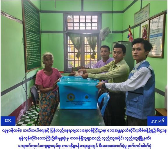လူမှုဝန်ထမ်း၊ ကယ်ဆယ်ရေးနှင့် ပြန်လည်နေရာချထားရေးဝန်ကြီးဌာန၊ ဘေးအန္တရာယ်ဆိုင်ရာစီမံခန့်ခွဲမှုဦးစီးဌာန၊ ရန်ကုန်တိုင်းဒေသကြီးဦးစီးမှူးရုံမှ တာဝန်ရှိသူများသည် (၂၈-၁-၂၀၂၆) ရက်နေ့ (၀၉:၃၀) အချိန်ခန့်တွင်လှည်းကူးခရိုင်၊လှည်းကူးမြို့နယ်၊ကျောက်ကုဒင်ကျေးရွာအုပ်စု၊ကမာနိဗ္ဗာန်ကျေးရွာတွင် မီးလောင် ကျွမ်းမှုကြောင့် အိမ်ထောင်စု (၂)စု၊ အိမ်ခြေ(၂)လုံး (လုံးဝပျက်စီး)၊ လူဦးရေ(၄)ဦးတို့အတွက် ဆန်ရိက္ခာဖိုး (၂၀၀၀၀/-) ၊ အိမ်ဆောက်ပစ္စည်းဖိုး (၄၀၀၀၀၀/-)၊ စုစုပေါင်း ထောက်ပံ့ငွေ (၄၂၀၀၀၀/-)၊ ကယ်ဆယ်ရေးပစ္စည်း (၁၆)မျိုးပါပုံး(၂)ပုံးတို့အား (၂-၂-၂၀၂၆)ရက်နေ့၊ (၁၅:၃၅) နာရီအချိန်တွင် ဘေးသင့်ပြည်သူများ ၏ လက်ဝယ်အရောက် ထောက်ပံ့ခဲ့ကြောင်း သတင်းရရှိပါသည်။ #fir #ygn_jan_2026 Source: ရန်ကုန်တိုင်းဒေသကြီးဦးစီးမှူးရုံး