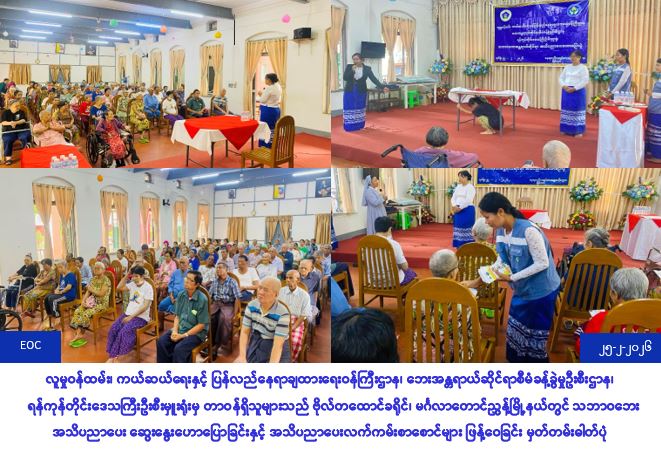 လူမှုဝန်ထမ်း၊ ကယ်ဆယ်ရေးနှင့် ပြန်လည်နေရာချထားရေးဝန်ကြီးဌာန၊ ဘေးအန္တရာယ်ဆိုင် ရာစီမံခန့်ခွဲမှုဦးစီးဌာန၊ ရန်ကုန်တိုင်းဒေသကြီးဦးစီးမှူးရုံးမှ တာဝန်ရှိသူများသည် ၂၅-၂-၂၀၂၆ ရက်နေ့ (၀၉း၃၀)အချိန်မှ (၁၀:၃၀)နာရီအထိ ဗိုလ်တထောင်ခရိုင်၊ မင်္ဂလာတောင်ညွှန့်မြို့နယ်ရှိ သီလရှင်လေးများ၊ အဘိုးအဘွား (၅၀) ဦးနှင့် ဆရာမ (၁၅) ဦး၊ ဝန်ထမ်း(၂၀)ဦးတို့အား သဘာဝဘေး အသိပညာပေးဆွေးနွေးဟောပြောခြင်း၊ လက်ကမ်းစာစောင်များ ဖြန့်ဝေခြင်းများ ဆောင်ရွက်ခဲ့ကြောင်း သတင်းရရှိပါသည်။ # ar #ygn_Feb_2026 Source: ရန်ကုန်တိုင်းဒေသကြီးဦးစီးမှူးရုံး (ဘစမ)