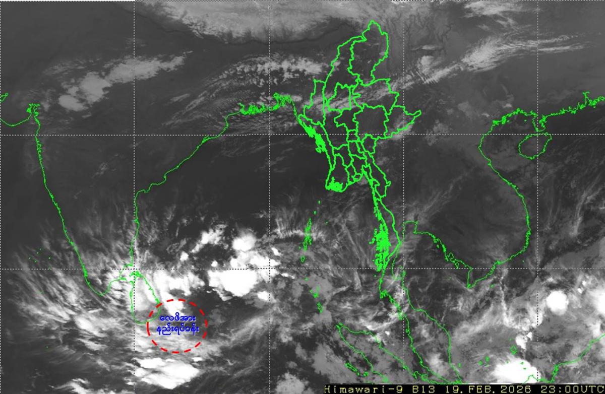 ၂၀၂၆ ခုနှစ်၊ ဖေဖော်ဝါရီလ ၁၉ ရက်နေ့ မြန်မာစံတော်ချိန် (၁၂:၀၀) နာရီအချိန်တွင် မိုးလေဝသနှင့် ဇလဗေဒညွှန်ကြားမှုဦးစီးဌာနမှ “လေဖိအားနည်းရပ်ဝန်းအခြေအနေ” ကို အောက်ပါအတိုင်း ထုတ်ပြန် ထားပါသည်- “ယနေ့မြန်မာစံတော်ချိန် ၁၀:၃၀ နာရီအချိန် တိုင်းထွာချက်များအရ အီကွေတာအနီး အိန္ဒိယသမုဒ္ဒရာနှင့် ယင်းနှင့်ဆက်စပ်လျက်ရှိသော ဘင်္ဂလားပင်လယ်အော်အနောက်တောင်ပိုင်းတို့တွင် ဖြစ်ပေါ်နေသော လေဖိအားနည်းရပ်ဝန်း (Low Pressure Area) သည် ဆက်လက်တည်ရှိနေပါသည်။ အဆိုပါ လေဖိအားနည်းရပ်ဝန်းသည် အနောက်-အနောက်မြောက်ဘက်သို့ ရွေ့လျားနိုင်ပြီး နောက် ၂၄ နာရီအတွင်း သီရိလင်္ကာနိုင်ငံသို့ ဦးတည်ရွေ့လျားနိုင်သည်ဟု ခန့်မှန်းရပါသည်။”