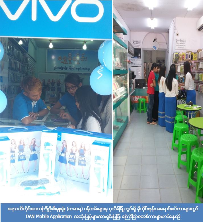 ကယ်ဆယ်ရေးနှင့် ပြန်လည်နေရာချထားရေးဦးစီးဌာန၊ ဧရာဝတီတိုင်းဒေသကြီးဦးစီးမှူးရုံးမှ ဝန်ထမ်းများသည် (၆-၁-၂၀၁၇) ရက်နေ့တွင် ပုသိမ်မြို့တွင်းရှိ မိုဘိုင်းဖုန်းအရောင်းစင်တာများတွင် ပြည်သူများ သဘာဝဘေး၊ မိုးလေဝသအခြေအနေနှင့် ကယ်ဆယ်ရေးသတင်းများ အချိန်နှင့်တစ်ပြေးညီ သိရှိနိုင်ရန်အတွက် DAN Mobile Application အသုံးပြုပုံ/အသုံးပြုနည်း နည်းလမ်းများအား လိုက်လံရှင်းပြခဲ့ပြီး စတစ်ကာများ ကပ်ပေးခြင်းတို့ကို ဆောင်ရွက်ပေးခဲ့ကြောင်း သိရှိရပါသည်။