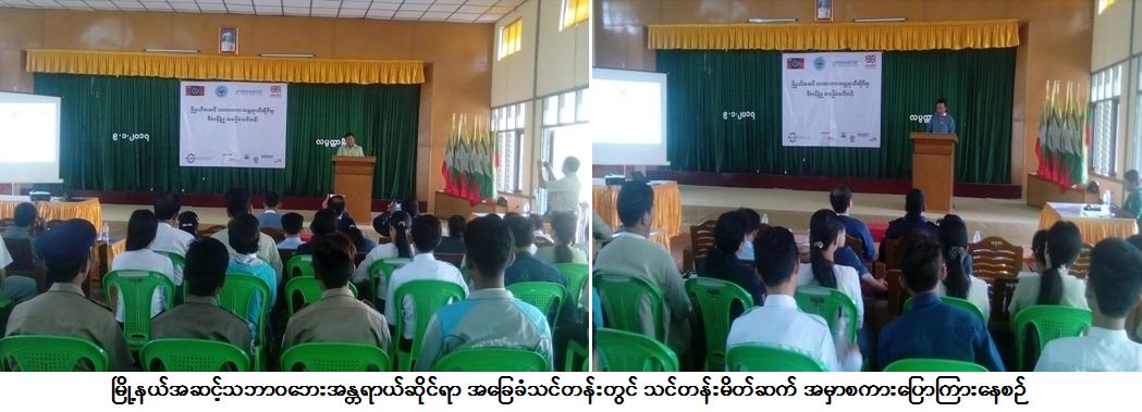 အင်္ဂလန်နိုင်ငံအစိုးရ၏ နိုင်ငံတကာဖွံ့ဖြိုးတိုးတက်ရေးဌာန (DFID-UK) ၏ ရန်ပုံငွေထောက်ပံ့ငွေနှင့်အတူ ကုလသမဂ္ဂမြို့ရွာနှင့် အိုးအိမ်ပြန်လည် ထူထောင်ရေးအစီအစဉ် (UN-HABITAT) နှင့် ကယ်ဆယ်ရေးနှင့်ပြန်လည်နေရာချထားရေးဦးစီးဌာန၊ လပွတ္တာခရိုင်ဦးစီးမှူးရုံးတို့ပူးပေါင်း၍ မြို့နယ်အဆင့်သဘာဝဘေးအန္တရာယ်ဆိုင်ရာ စီမံခန့်ခွဲမှုအခြေခံသင်တန်းဖွင့်ပွဲအခမ်းအနားအား (၉-၁-၂၀၁၇) ရက်နေ့တွင် လပွတ္တာမြို့နယ်၊ ရွေးနဒီခန်းမ၌ ကျင်းပခဲ့ရာ ဒုတိယခရိုင်အုပ်ချုပ်ရေးမှူး ဦးလှရှောင်မှ အဖွင့်အမှာစကားပြောကြားခဲ့ပြီး လပွတ္တာခရိုင်ကယ်ဆယ်ရေးမှ လက်ထောက်ညွှန်ကြားရေးမှူး ဦးကျော်စွာမှ သင်တန်းမိတ်ဆက် အမှာစကားပြောကြားခဲ့ပါသည်။ အဆိုပါသင်တန်းဖွင့်ပွဲအား ခရိုင်/မြို့နယ်အဆင့် ဌာနဆိုင်ရာ (၂၅) ဦး၊ သင်တန်းသား (၃၅) ဦး၊ စုစုပေါင်း (၆၀) ဦးတက်ရောက်ခဲ့ပါသည်။ ၄င်းနောက် သင်ခန်းစာပို့ချခြင်းအား လပွတ္တာမြို့ရှိ လေးထပ်စာသင်တိုက်၌ ဆက်လက်ကျင်းပခဲ့ရာ လပွတ္တာခရိုင်ကယ်ဆယ်ရေးဦးစီးဌာနမှ လက်ထောက်ညွှန်ကြားရေးမှူး ဦးကျော်စွာမှ သင်ခန်း စာများပို့ချခဲ့ပါသည်။ အဆိုပါသင်တန်းအား (၉-၁-၂၀၁၇) ရက်နေ့မှ (၁၃-၁-၂၀၁၇) ရက်နေ့အထိ (၅) ရက်ကြာ ကျင်းပမည်ဖြစ်ကြောင်း သတင်းရ ရှိပါသည်။