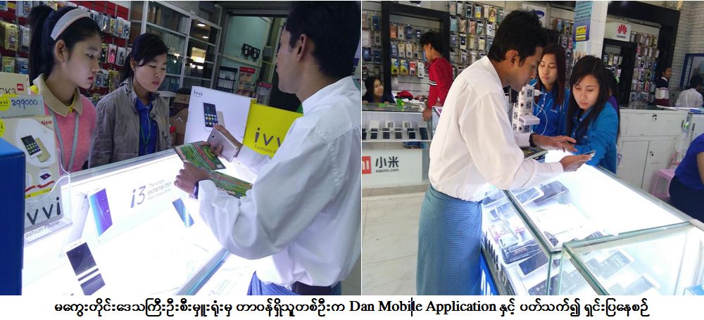 ကယ်ဆယ်ရေးနှင့်ပြန်လည်နေရာချထားရေးဦးစီးဌာန၊ မကွေးတိုင်းဒေသကြီးဦးစီးမှူးရုံးမှ တာဝန်ရှိသူများသည် (၉-၁-၂၀၁၇) ရက်နေ့၌ မကွေး မြို့အတွင်းရှိ Mobile Phone အရောင်းစင်တာများတွင် ပြည်သူများ သဘာဝဘေး၊ မိုးလေဝသအခြေအနေနှင့် ကယ်ဆယ်ရေးသတင်းများ အချိန်နှင့်တပြေးညီ သိရှိနိုင်ရန်အတွက် DAN Mobile Application အသုံးပြုပုံ/အသုံးပြု နည်းလမ်းများအား လိုက်လံရှင်းပြခဲ့ပြီး စတစ်ကာများ ကပ်ပေးခြင်းတို့ကို ဆောင်ရွက်ပေးခဲ့ကြောင်း သတင်းရရှိပါသည်။