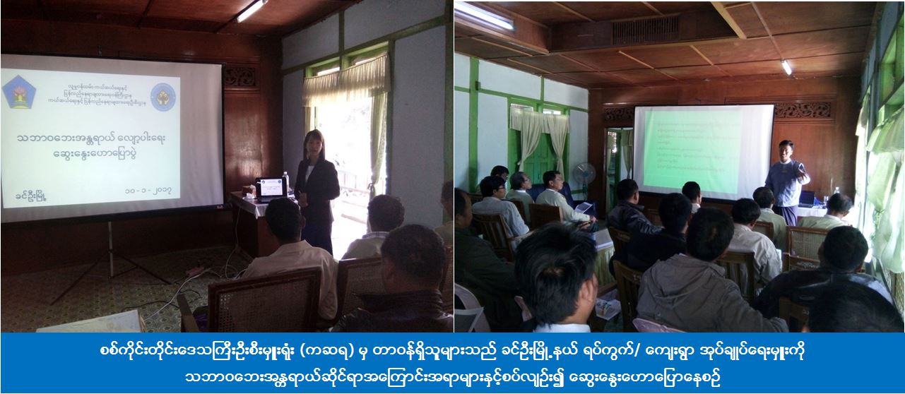 ကယ်ဆယ်ရေးနှင့် ပြန်လည်နေရာချထားရေးဦးစီးဌာန၊ စစ်ကိုင်းတိုင်းဒေသကြီးဦးစီးမှူးရုံးမှ တာဝန်ရှိသူများသည် (၁၀-၁-၂၀၁၇) ရက်နေ့တွင် ခင်ဦးမြို့နယ် အထွေထွေအုပ်ချုပ်ရေးဦးစီးဌာနရုံးခန်းမ၌ သဘာဝဘေးအသိပညာပေးဆွေးနွေးဟောပြောပွဲ ကျင်းပပြုလုပ်ခဲ့ရာ ခင်ဦးမြို့နယ်ရှိ ရပ်ကွက်/ကျေးရွာ အုပ်ချုပ်ရေးမှူး (၅၆)ဦး တက်ရောက်ခဲ့ကြောင်း သိရှိရပါသည်။
