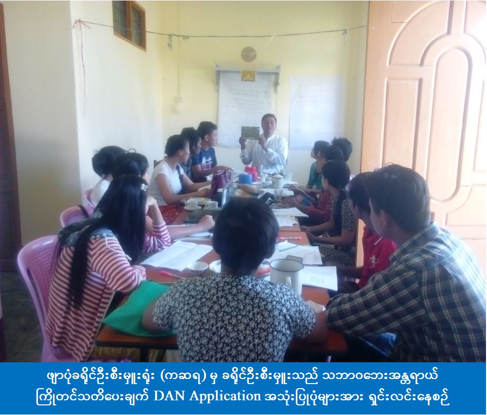 (၁၂-၁-၂၀၁၇) ရက်နေ့တွင် ဖျာပုံခရိုင်ဦးစီးမှူးရုံး (ကဆရ) သည် Action Aid အဖွဲ့နှင့်ပူးပေါင်း၍ သဘာဝဘေးအန္တရာယ်ကြိုတင်ပြင်ဆင်ကာကွယ်ရေးအတွက် ဘေးဖြစ်နိုင်ခြေရှိသည့်ကမ်းရိုးတန်းဒေသရှိ စေတနာ့ဝန်ထမ်းလူငယ်များကို သဘာဝဘေးအန္တရာယ်ဆိုင်ရာထိခိုက်နိုင်ခြေအား နားလည်နိုင်မှုစွမ်းရည်နှင့် ဘေးဖြစ်နိုင်ခြေများ ကနဦးလေ့လာဆန်းစစ်ခြင်းသင်တန်းနှင့် သဘာဝဘေးအန္တရာယ်ကြိုတင်သတိပေးချက် DAN Application အသုံးပြုပုံအား ဖျာပုံခရိုင်ဦးစီးမှူးရုံး (ကဆရ) ၌ ကျင်းပပြုလုပ်ခဲ့ရာ သင်တန်းသား (၁၅) ဦးတက်ရောက်ခဲ့ကြောင်း သိရှိရပါသည်။