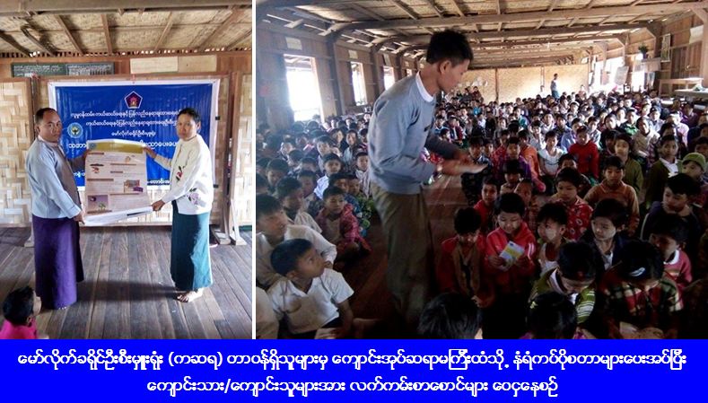 ကယ်ဆယ်ရေးနှင့် ပြန်လည်နေရာချထားရေးဦးစီးဌာန၊ မော်လိုက်ခရိုင်ဦးစီးမှူးရုံးမှ တာဝန်ရှိသူများသည် (၁၂-၁-၂၀၁၇) ရက်နေ့ (၁ဝ:ဝ၀) အချိန်မှ (၁၁:၃၀) အချိန်ထိ စစ်ကိုင်းတိုင်းဒေသကြီး၊ မော်လိုက်ခရိုင်၊ မော်လိုက်မြို့နယ်၊ တောင်းအင် ကျေးရွာ အခြေခံပညာအလယ်တန်းကျောင်းတွင် သဘာဝဘေးအန္တရာယ်များ ကျရောက်လာပါက ကျောင်းသား/ ကျောင်းသူ လူငယ်များအနေဖြင့် ထိခိုက်ဆုံးရှုံးမှုလျော့နည်းစေရန် ရည်ရွယ်၍ သဘာဝဘေးနှင့်စပ်လျဉ်းသည့် အသိပညာပေးဟောပြောပွဲ ကျင်းပပြုလုပ်ခဲ့ပြီး အဆိုပါဆွေးနွေးပွဲသို့ ဆရာ/ ဆရာမများနှင့် ကျောင်းသား/ကျောင်းသူ စုစုပေါင်း (၄၂၀) ဦး တက်ရောက် ခဲ့ပြီး သဘာဝဘေးနှင့်ပတ်သက်သည့် လက်ကမ်းစာစောင်များဖြန့်ဝေပေးခြင်းနှင့် နံရံကပ်ပိုစတာများအား ကျောင်းအုပ် ဆရာမကြီးထံပေးအပ်ခဲ့ကြောင်း သိရှိရပါသည်။