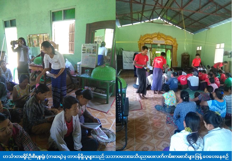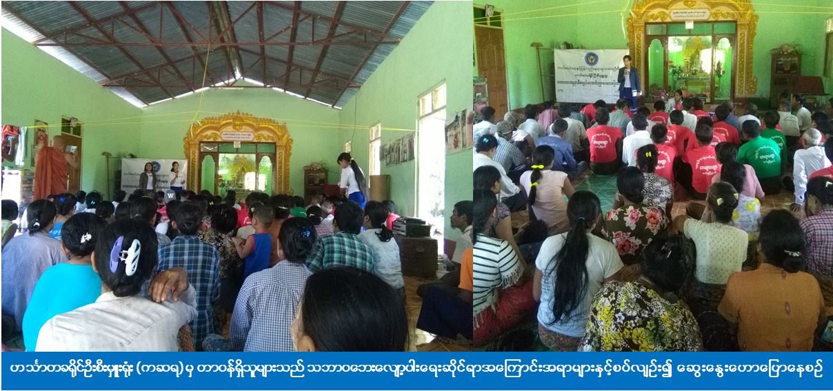 (၁၃-၁-၂၀၁၇) ရက်နေ့တွင် ဟင်္သာတခရိုင်ဦးစီးမှူးရုံး (ကဆရ) မှ တာဝန်ရှိသူများသည် ဟင်္သာတခရိုင်၊ အင်္ဂပူမြို့နယ်၊ ထန်းပင်ကန်ကျေးရွာအုပ်စု၊ တာနားကျေးရွာရှိ ဘုရားသုံးဆူ ဘုန်းကြီးကျောင်းဓမ္မာရုံ၌ သဘာဝဘေးလျော့ပါးရေး အသိပညာပေးဆွေးနွေးပွဲ ကျင်းပခဲ့ရာ ကျေးရွာအုပ်စုအတွင်းရှိ ကျေးရွာ (၆) ရွာမှ ပြည်သူ (၇၀) ဦးတက်ရောက်ခဲ့ကြောင်း သိရှိရပါသည်။