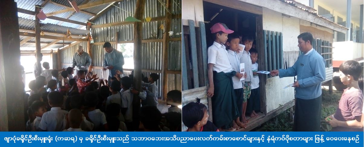 (၁၃-၁-၂၀၁၇) ရက်နေ့တွင် ဖျာပုံခရိုင်ဦးစီးမှူးရုံး (ကဆရ) သည် Action Aid အဖွဲ့နှင့်ပူးပေါင်း၍ ဖျာပုံမြို့နယ်၊ ဒေါ်ငြိမ်းကျေးရွာအုပ်စု၊ ဘုရားလေးစုကျေးရွာ ပြည်သူများနှင့် မူလတန်းကျောင်းသား/သူများအား ကမ်းရိုးတန်းဒေသဘေးဖြစ်နိုင်ခြေ ကနဦးလေ့လာဆန်းစစ်ခြင်းနှင့် သဘာဝဘေးအန္တရာယ်ဆိုင်ရာအကြောင်းအရာများနှင့်စပ်လျဉ်း၍ အသိပညာပေးဆွေးနွေးဟောပြောခဲ့ပြီး လက်ကမ်းစာစောင်နှင့် နံရံကပ်ပိုစတာများ ဝေငှပေးခဲ့ကြောင်း သိရှိရပါသည်။