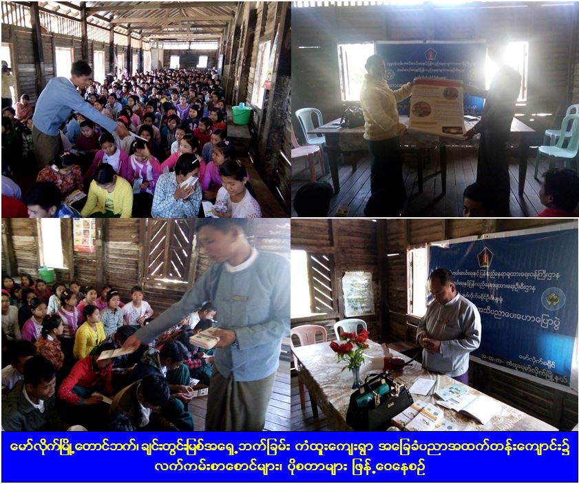 မော်လိုက်ခရိုင်ဦးစီးမှူးရုံးမှ တာဝန်ရှိသူများသည် (၁၃-၁-၂၀၁၇)ရက်နေ့ နံနက်ပိုင်း (၁ဝ:ဝ၀)နာရီမှ (၁၁:၃၀)နာရီထိ မော်လိုက်မြို့တောင်ဘက်၊ ချင်းတွင်းမြစ်အရှေ့ဘက်ခြမ်း ကံထူးကျေးရွာ အခြေခံပညာအထက်တန်းကျောင်းသို့ သွားရောက်ပြီး ကျောင်းအုပ်ဆရာမကြီးနှင့်ဆရာ/မ၊ ကျောင်းသား/သူ (၄၀၀)ဦးခန့်အား သဘာဝဘေးအန္တရာယ်များ၏ အကြောင်းများ၊ ဌာန၏ လုပ်ငန်းဆောင်ရွက်မှုများ၊ အထူးသဖြင့် ၄င်းဒေသတွင် မီးဘေး၊ ငလျင်ဘေး၊ မိုးကြိုးဘေး၊ လျှပ်တပြတ် ရေကြီးခြင်းများ ဖြစ်ပွါးခဲ့ပါက ကြိုတင်ပြင်ဆင်ရေး ကြိုတင်ကာကွယ်ရေးနှင့် တုံ့ပြန် ဆောင်ရွက်ရေးတို့ကို ဟောပြောဆွေးနွေးခဲ့ပြီး လက်ကမ်းစာစောင်များ၊ နံရံကပ်ပိုစတာများ ဖြန့်ဝေပေးခဲ့ကြောင်း သတင်းရရှိပါသည်။