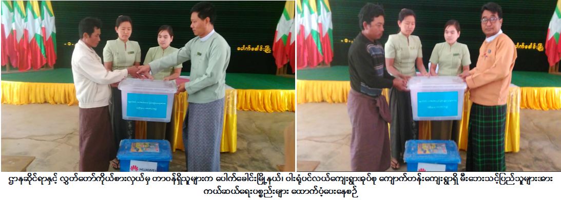 လူမှုဝန်ထမ်း၊ ကယ်ဆယ်ရေးနှင့်ပြန်လည်နေရာချထားရေးဝန်ကြီးဌာန၊ ကယ်ဆယ်ရေးနှင့်ပြန်လည်နေရာချထားရေးဦးစီးဌာန၊ ပြည်ခရိုင်ရုံးဦးစီး မှူးရုံးမှ တာဝန်ရှိသူများသည် ပဲခူးတိုင်းဒေသကြီး (အနောက်ပိုင်း) ပြည်ခရိုင်၊ ပေါက်ခေါင်းမြို့နယ်၊ ဝါးရုံပင်လယ်ကျေးရွာအုပ်စု ကျောက်တန်း ကျေးရွာတွင် (၁၇-၁-၂၀၁၇) နေ့က ဖြစ်ပွားသော မီးဘေးကြောင့် အိမ်ထောင်စု (၃) စု လူဦးရေ (၁၂) ဦးတို့အတွက် အိမ်ဆောက်ပစ္စည်းဖိုး (၂၀၀၀၀၀ိ/-) ဆန်ရိက္ခာ (၃) ရက်စာ (၁၀၈၀၀ိ/-) ကယ်ဆယ်ရေးပစ္စည်း (၉) မျိုး (ပလပ်စတစ်ပုံးပါ) ပါ (၃) ပုံးFamily Kits (၃) ပုံး တို့အား ပေါက်ခေါင်းမြို့နယ်အထွေထွေအုပ်ချုပ်ရေးဦးစီးဌာနတွင် ကျင်းပပြုလုပ်သော လွှတ်တော်ကိုယ်စားလှယ်များတက်ရောက်သည့် အခမ်းအနားတွင် (၂၀-၁-၂၀၁၇) ရက်နေ့တွင် သွားရောက်ထောက်ပံ့ပေးခဲ့ကြောင်း သတင်းရရှိပါသည်။