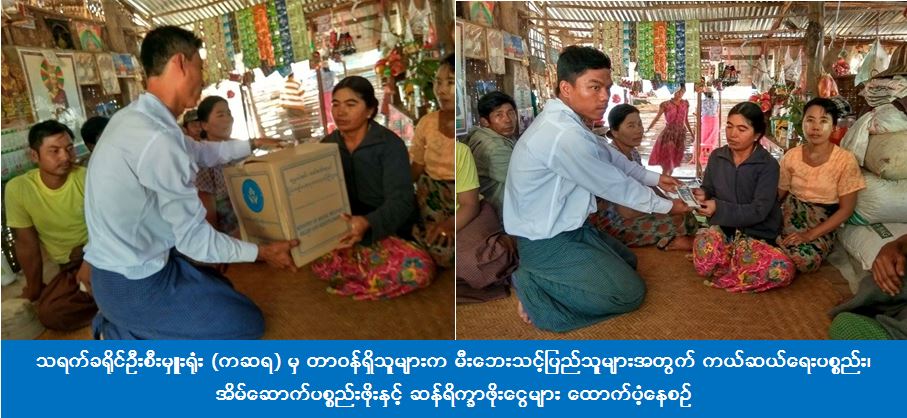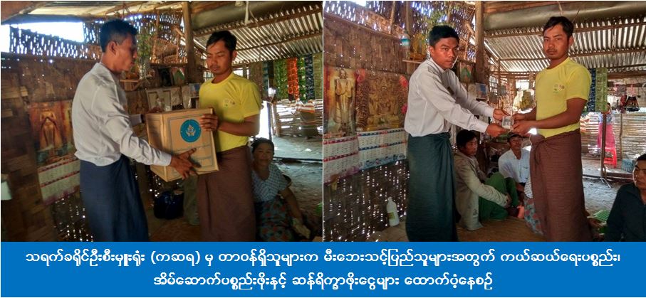 (၂၁-၁-၂၀၁၇) ရက်နေ့တွင် မကွေးတိုင်းဒေသကြီး၊ သရက်ခရိုင်၊ အောင်လံမြို့နယ်၊ ကျွန်းတိုင်းကျေးရွာ၌ မီးလောင်ကျွမ်းမှုဖြစ်ပွားခဲ့ရာ မီးဘေးသင့်ခဲ့သည့် အိမ်ခြေ (၂) လုံး အိမ်ထောင်စု (၂) စုမှ လူဦးရေ (၁၀) ဦးအတွက် ဆန်ရိက္ခာဖိုးငွေ (၉၀၀၀ိ/-)၊ အိမ်ခြေ (၁) လုံးလျှင် အိမ်ဆောက်ပစ္စည်းဖိုးငွေ (၁) သိန်းစီဖြင့် အိမ်ခြေ (၂) လုံးအတွက် အိမ်ဆောက်ပစ္စည်းဖိုးငွေ (၂) သိန်းကျပ်နှင့် ကယ်ဆယ်ရေးပစ္စည်း (၉) မျိုး အိမ်ထောင်စု (၂) စုစာအား (၂၂-၁-၂၀၁၇) ရက်နေ့တွင် သရက်ခရိုင်ဦးစီးမှူးရုံး (ကဆရ) မှ တာဝန်ရှိသူများက သွားရောက်ထောက်ပ့ံပေးအပ်ခဲ့ကြောင်း သိရှိရပါသည်။