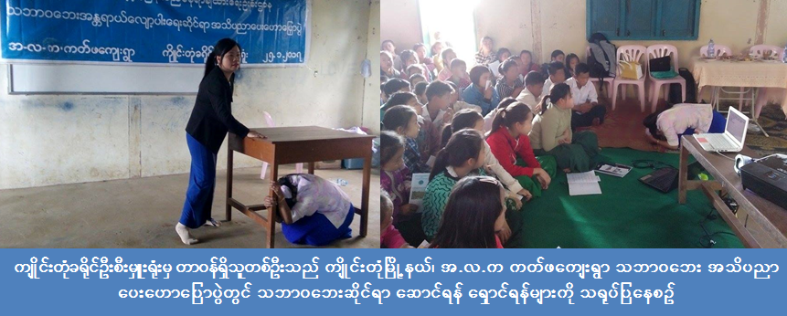 (၂၅-၁-၂၀၁၇) ရက်နေ့တွင် ကယ်ဆယ်ရေးနှင့် ပြန်လည်နေရာချထားရေးဦးစီးဌာန၊ ကျိုင်းတုံခရိုင် ဦးစီးမှူးရုံးမှ တာဝန်ရှိသူများသည် ကျိုင်းတုံမြို့နယ်၊ ကတ်ဖကျေးရွာအုပ်စု၊ အ .လ. က. ကတ်ဖကျေးရွာ တွင် သဘာဝဘေးအန္တရာယ် လျော့ပါးရေးဆိုင်ရာ အသိပညာပေးဟောပြောပွဲကို ပြုလုပ်ခဲ့ပါသည်။ အဆိုပါ ဟောပြောပွဲတွင် သဘာဝဘေး အသိပညာပေး လက်ကမ်းစာစောင်များဖြန့်ဝေခြင်း၊ အရေးပေါ်ဆက်သွယ်နိုင်သည့် ဖုန်းနံပါတ်ရေးသား၍ ကပ်ပေးခြင်း၊ ဘေးဖြစ်ပွားမှု၊ ထောက်ပံ့မှု၊ အသိပညာပေးလှုပ်ရှားမှု စသည့် မှတ်တမ်းဓါတ်ပုံများ ကပ်ခြင်း၊ သဘာဝဘေးအန္တရာယ် အကြောင်းနှင့် ဘေးမဖြစ်မီ၊ ဘေးဖြစ်ပွားချိန်၊ ဘေးဖြစ်ပွားပြီးချိန်များ၌ ဆောင်ရန်ရှောင်ရန်များအား ဟောပြောဆွေးနွေးခဲ့ပြီး ဘေးသရုပ် ပြသခြင်း၊ လိုက်ပါဆောင်ရွက်စေခြင်းများပြုလုပ်ခဲ့ရာ တက်ရောက်သူ စုစုပေါင်း (၂၃၈) ဦးတက်ရောက်ခဲ့ကြောင်း သိရှိရပါသည်။