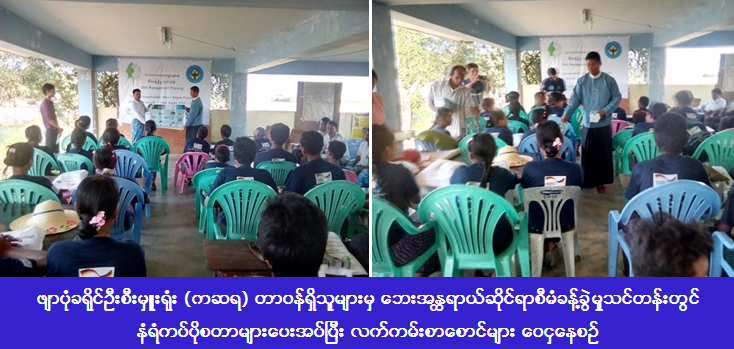 ဖျာပုံခရိုင်ဦးစီးမှူးရုံး (ကဆရ) တာဝန်ရှိသူများသည် စိုပြေမြန်မာအဖွဲ့နှင့် ပူးပေါင်း၍ ဖျာပုံခရိုင်၊ ဘိုကလေး မြို့နယ်၊ ဆတ်ကျွန်းကျေးရွာအုပ်စု၊ ဆတ်ကျွန်းကျေးရွာ Cyclone Shelter တွင် အနီးပတ်ဝန်းကျင် ကျေးရွာများ သည် သဘာဝဘေးအန္တရာယ်များဆိုးရွားစွာကြုံတွေ့ခံစားရသည့်ဒေသဖြစ်ခြင်းကြောင့် ဘေးမဖြစ်မီ၊ ဘေးဖြစ် စဉ်နှင့် ဘေးဖြစ်ပြီးချိန်များတွင် လုပ်ဆောင်ရန်များအား သိရှိနိုင်ရန်အတွက် သဘာဝဘေးအန္တရာယ်ဆိုင်ရာစီမံ ခန့်ခွဲမှုသင်တန်းအား (၂၄-၁-၂၀၁၇) ရက်နေ့မှ (၂၆-၁-၂၀၁၇) ရက်နေ့အထိ သင်တန်းကာလ (၃) ရက်ကြာ ကျင်းပပြုလုပ်ခဲ့ပြီး လက်ကမ်းစာစောင်များ၊ နံရံကပ်ပိုစတာများလည်း ဝေငှပေးခဲ့ပါသည်။ ထို့ပြင် DAN Mobile Application နှင့် KOBO Mobile Application အသုံးပြုပုံ/အသုံးပြုနည်း နည်းလမ်းများအား ရှင်းလင်းပြောကြားခဲ့ပါသည်။ အဆိုပါ သင်တန်းသို့ သင်တန်းသားဦးရေ စုစုပေါင်း (၃၅) ဦးတက်ရောက်ကြောင်း သတင်းရရှိပါသည်။