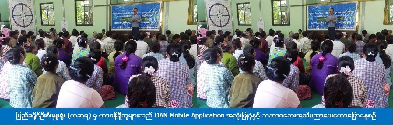 (၂၇-၁-၂၀၁၇) ရက်နေ့တွင် ကယ်ဆယ်ရေးနှင့် ပြန်လည်နေရာချထားရေးဦးစီးဌာန၊ ပြည်ခရိုင်ဦးစီးမှူးရုံးမှ ဝန်ထမ်းများသည် ပြည်ခရိုင်၊ ပန်းတောင်းမြို့နယ်၊ စမ်းပေါက်ချောင်းကျေးရွာသို့သွားရောက်ကာ DAN Mobile Application အသုံးပြုပုံနှင့် အကျိုးရှိပုံတို့အား ရှင်းပြပြီးနောက် သဘာဝဘေးအသိပညာပေးဟောပြောပွဲအား ဆက်လက်ကျင်းပပြုလုပ်််ခဲ့ကြောင်း သိရှိရပါသည်။
