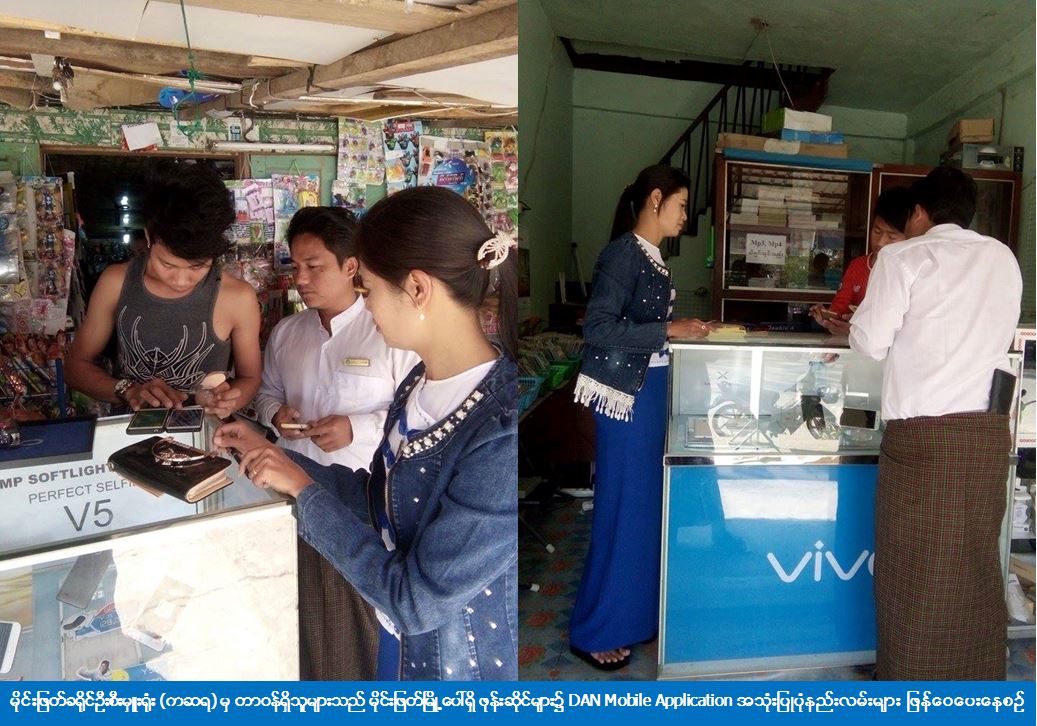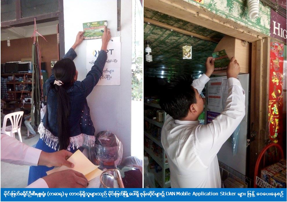 မိုင်းဖြတ်ခရိုင််ဦးစီးမှူးရုံး (ကဆရ) မှ တာဝန်ရှိသူများသည် (၃၁-၁-၂၀၁၇) ရက်နေ့တွင် မိုင်းဖြတ်မြို့ပေါ်ရှိ ဖုန်းဆိုင်များ၌ DAN Mobile Application အသုံးပြုပုံနည်းလမ်းများနှင့် Sticker များ ဖြန့်ဝေပေးခြင်းတို့ကို ဆောင်ရွက်ခဲ့ကြောင်း သိရှိရပါသည်။