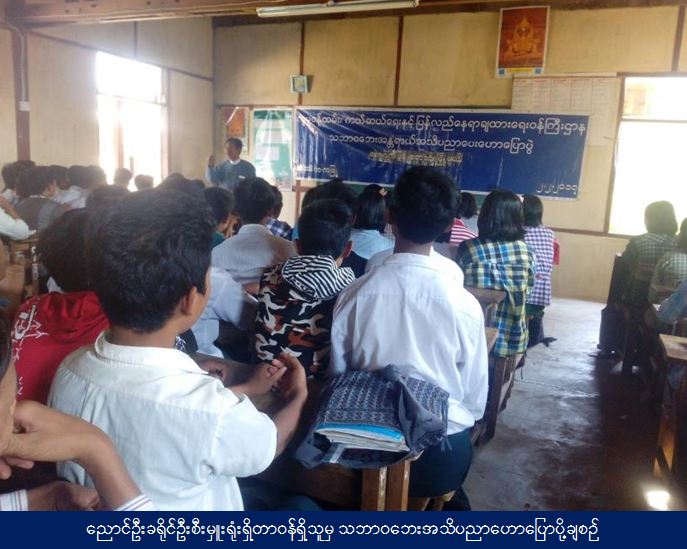 ကယ်ဆယ်ရေးနှင့် ပြန်လည်နေရာချထားရေးဦးစီးဌာန၊ ညောင်ဦးခရိုင်ဦးစီးမှူးရုံးမှ တာဝန်ရှိသူများသည် (၂-၂-၂၀၁၇) ရက်နေ့၌ ကျောက်ပန်းတောင်းမြို့နယ် အ.ထ.က (ကဗြူ)တွင် သဘာဝဘေးလျော့ပါးရေး အသိပညာပေးဟောပြောပွဲပြုလုပ်ခဲ့ရာ အဆိုပါဟောပြောပွဲသို့ ကျောင်းသား/သူ (၃၃၀)ဦး တက်ရောက်ခဲ့ကြောင်းနှင့် လက်ကမ်းစာစောင်များ ဝေငှခဲ့ကြောင်း သတင်းရရှိပါသည်။