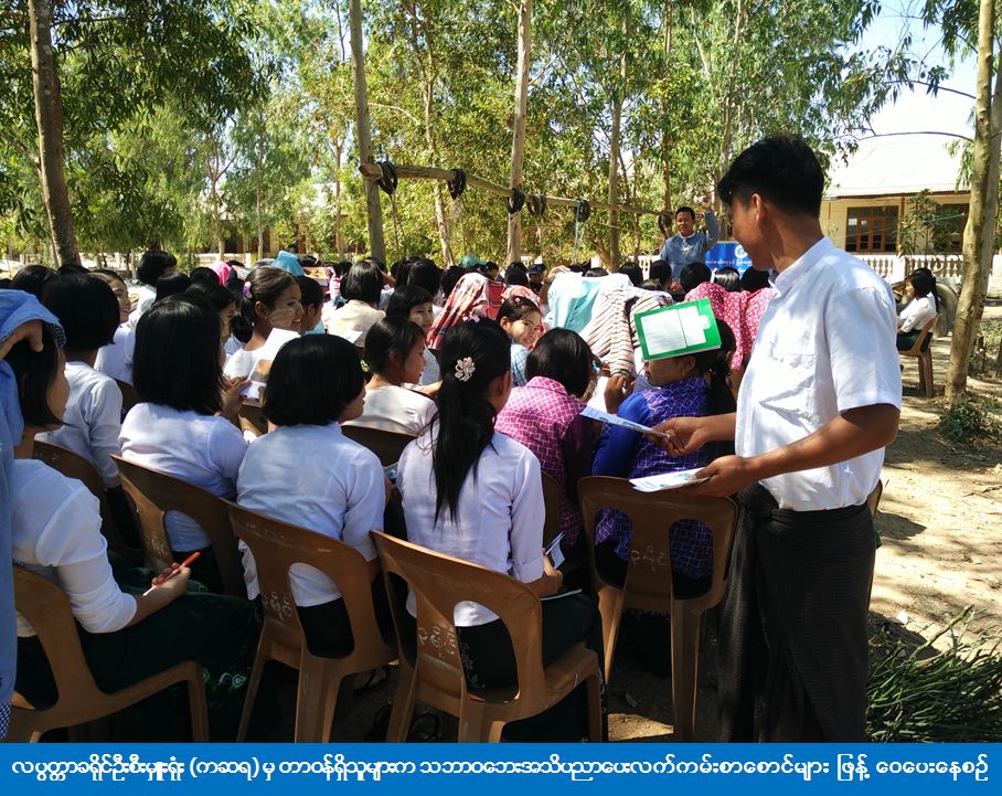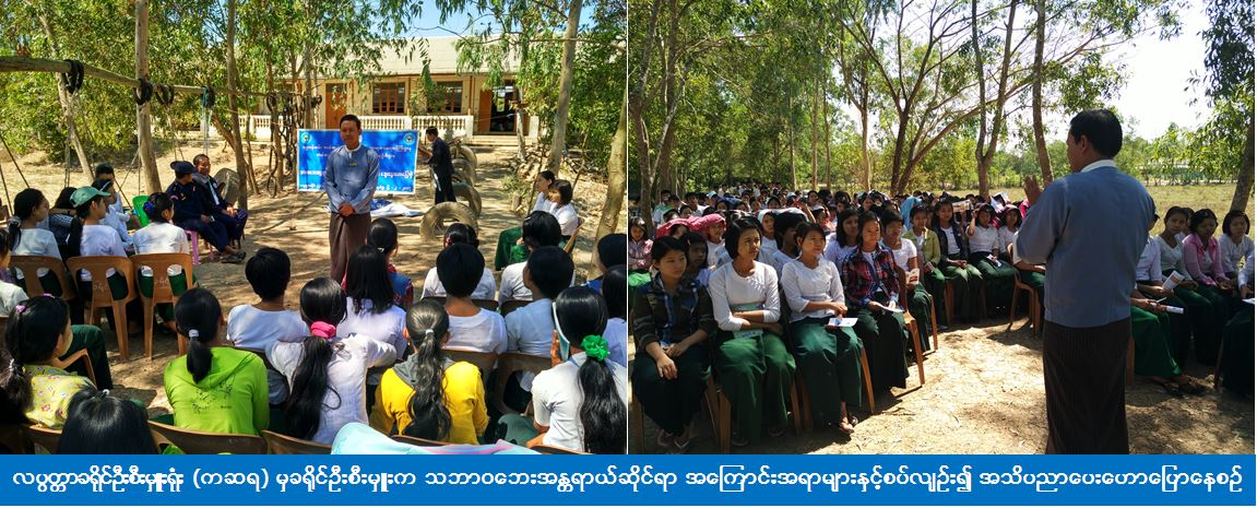 လပွတ္တာခရိုင်ဦးစီးမှူးရုံး (ကဆရ) မှ တာဝန်ရှိသူများသည် လပွတ္တာမြို့၊ စားသုံးသူရေးရာဦးစီးဌာန၊ မီးသတ်ဦးစီးဌာနတို့နှင့်ပူးပေါင်း၍ (၆-၂-၂၀၁၇ ) ရက်နေ့တွင် (၃)မိုင်မြို့သစ်အခြေခံပညာအထက်တန်းကျောင်း၌ ကျောင်းသား/ကျောင်းသူ (၂၀၀) ဦး၊ ဆရာ/ ဆရာမ (၁၀) ဦးစုစုပေါင်း (၂၁၀) ဦးအား သဘာဝဘေးအန္တရာယ်ဆိုင်ရာ အသိပညာပေးဟောပြောပွဲ ကျင်းပဆောင်ရွက်ပေးခဲ့ပြီး သဘာဝဘေးအသိပညာပေးလက်ကမ်းစာစောင်များဝေငှပေးခဲ့ကြောင်း သိရှိရပါသည်။