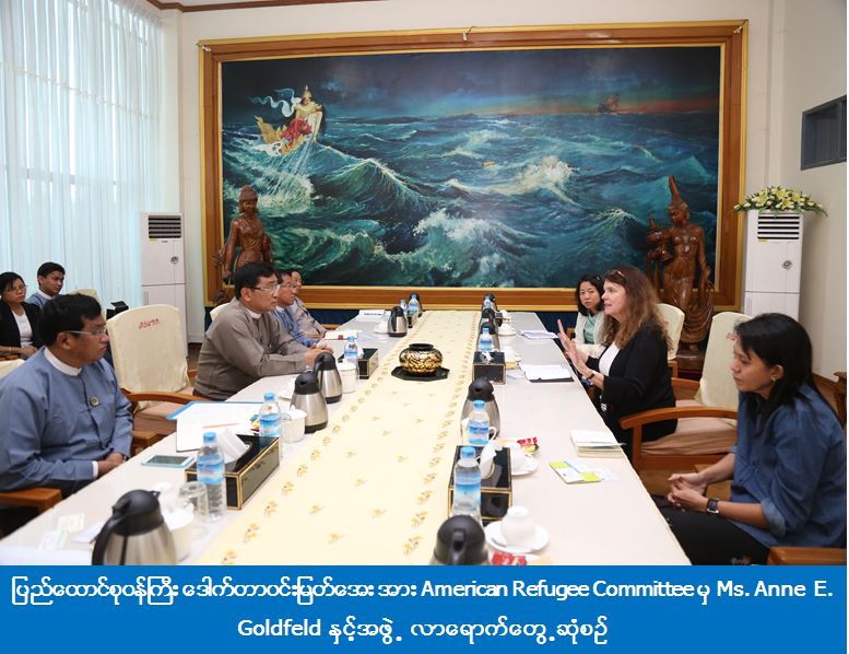 လူမှုဝန်ထမ်း၊ ကယ်ဆယ်ရေးနှင့် ပြန်လည်နေရာချထားရေးဝန်ကြီးဌာန ၊ ပြည်ထောင်စုဝန်ကြီး ဒေါက်တာ ဝင်းမြတ်အေးအား (၁၄-၂-၂၀၁၇) ရက်နေ့၊ နံနက် (၉) နာရီအချိန်တွင် American Refugee Committee မှ Ms. Anne E. Goldfeld နှင့်အဖွဲ့က အဆိုပါဝန်ကြီးရုံးမေခလာခန်းမ၌ လာရောက်တွေ့ဆုံပါသည်။