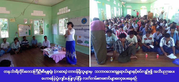 ကယ်ဆယ်ရေးနှင့်ပြန်လည်နေရာချထားရေးဦးစီးဌာန၊ တနင်္သာရီတိုင်းဒေသကြီးဦးစီးမှူးရုံး တာဝန်ရှိသူများသည် (၁၅-၂-၂၀၁၇) ရက်နေ့တွင် ထားဝယ်ခရိုင်၊ ရေဖြူမြို့နယ်၊ ဇာဒီကျေးရွာအုပ်စု၊ ကျောက်ထရံကျေးရွာတွင် သဘာဝဘေးအသိပညာပေး ဟောပြောပွဲကျင်းပပြုလုပ်ခဲ့ပြီး၊ သဘာဝဘေးနှင့် ပတ်သက်သော လက်ကမ်းစာစောင်များ ဖြန့်ဝေပေးခြင်း၊ အအေးဘူးများဝေငှပေးခြင်းနှင့် ကျေးရွာအုပ်ချုပ်ရေးမှူးထံသို့ ဥပဒေစာအုပ်နှင့် ရေဒီယိုပေးအပ်ခဲ့ ပါသည်။ အဆိုပါ ဟောပြောပွဲသို့ တက်ရောက်သူဦးရေ (၁၅၀) ဦးခန့်ရှိကြောင်း သတင်းရရှိပါသည်။