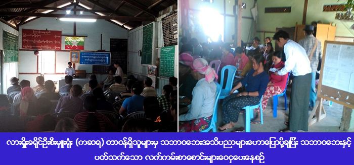 ကယ်ဆယ်ရေးနှင့်ပြန်လည်နေရာချထားရေးဦးစီးဌာန၊ လားရှိုးခရိုင်ဦးစီးမှူးရုံးမှ တာဝန်ရှိသူများသည် (၁၇-၂-၂၀၁၇) ရက်နေ့တွင် လားရှိုးမြို့နယ်၊ မယ်ဟန်ကျေးရွာတွင် သဘာဝဘေး အသိပညာပေး ဟောပြောပွဲ ကျင်းပပြုလုပ်ခဲ့ပြီး သဘာဝဘေးနှင့် ပတ်သက်သော လက်ကမ်းစာစောင်များဝေငှပေးခြင်း၊ DAN Mobile Application အသုံးပြုပုံ/အသုံးပြုနည်းများအားရှင်းလင်းပြောကြားခြင်းနှင့် DAN Mobile Application Sticker များဖြန့်ဝေပေးခဲ့ပါသည်။ အဆိုပါ ဟောပြောပွဲသို့ တက်ရောက်သူဦးရေ (၇၀) ဦးခန့်ရှိကြောင်း သတင်းရရှိပါသည်။