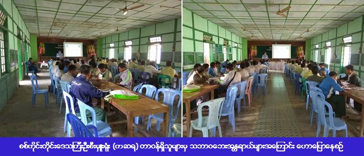 ကယ်ဆယ်ရေးနှင့်ပြန်လည်နေရာချထားရေးဦးစီးဌာန၊ စစ်ကိုင်းတိုင်းဒေသကြီးဦးစီးမှူးရုံး တာဝန်ရှိသူများသည် (၁၇-၂-၂၀၁၇) ရက်နေ့တွင် ကလေးဝမြို့နယ်အတွင်းရှိ ရပ်ကွက်/ကျေးရွာ အုပ်ချုပ်ရေးမှူး (၇၈) တို့အား သဘာဝဘေးအန္တရာယ်ဆိုင်ရာအသိပညာပေးဟောပွဲကျင်းပပြုလုပ်ခဲ့ပြီး ဘေးနှင့် ပတ်သက်သော လက်ကမ်းစာစောင်များလည်း ဖြန့်ဝေပေးခဲ့ကြောင်း သတင်းရရှိပါသည်။