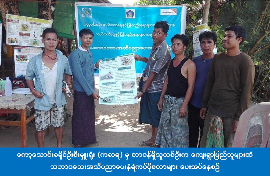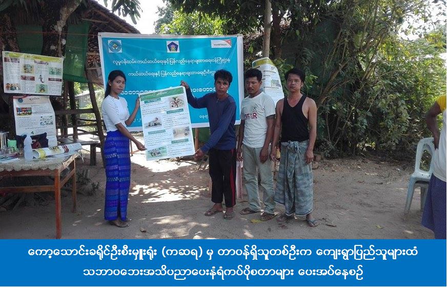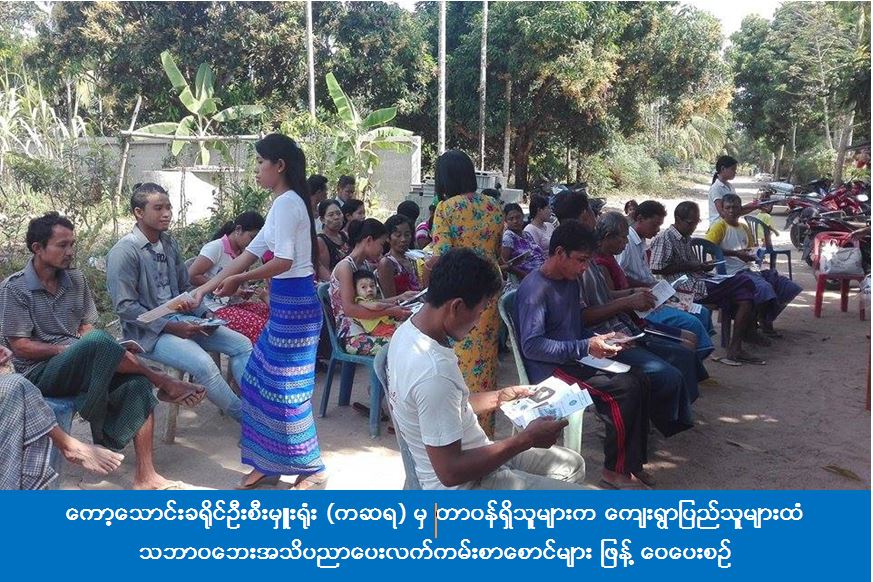 (၂၅-၂-၂၀၁၇) ရက်နေ့တွင် ကော့သောင်းခရိုင်ဦးစီးမှူးရုံး (ကဆရ) မှ တာဝန်ရှိသူများသည် ကော့သောင်းမြို့နယ်၊ သောင်ဖြူကျေးရွာ၌ သဘာဝဘေးအသိပညာပေးဟောပြောပွဲကျင်းပပြုလုပ်ရာ ကျေးရွာနေပြည်သူ (၂၀၀) ဦးတက်ရောက်ခဲ့ပြီး တက်ရောက်လာသူများထံသို့ သဘာဝဘေးအသိပညာပေးလက်ကမ်းစာစောင်များ၊ နံရံကပ်ပိုစတာများ၊ စာအုပ်များ၊ ဘောလ်ပင်များနှင့် မုန့်များဝေငှခဲ့ကြောင်း သိရှိရပါသည်။