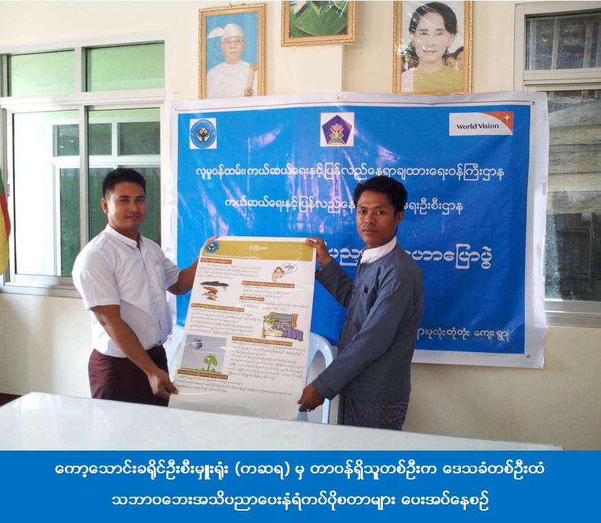 ကော့သောင်းခရိုင်ဦးစီးမှူးရုံး (ကဆရ) မှ တာဝန်ရှိသူများသည် (၂၇-၂-၂၀၁၇) ရက်နေ့တွင် ကော့သောင်းမြို့နယ်၊ ပုလုံးတုံတုံးကျေးရွာ၌ သဘာဝဘေးအသိပညာပေးဟောပြောပွဲ ကျင်းပပြုလုပ်ရာ ဒေသခံပြည်သူ (၁၂၀) ဦးတက်ရောက်ခဲ့ကြောင်းနှင့် တက်ရောက်လာသူများထံ သဘာဝဘေးအသိပညာပေးနံရံပိုစတာများ ဖြန့်ဝေပေးခဲ့ကြောင်း သိရှိရပါသည်။