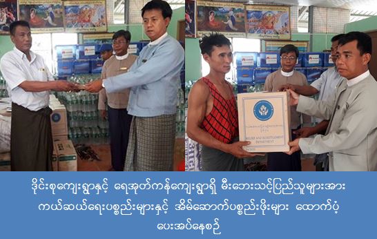 (၂၈-၂-၂၀၁၇) ရက်နေ့တွင် ရန်ကုန်တိုင်းဒေသကြီးဦးစီးမှူးရုံးမှ တာဝန်ရှိသူများသည် လှိုင်သာယာမြို့နယ်၊ ဒိုင်းစုကျေးရွာနှင့် ရေအုတ်ကန်ကျေးရွာတို့တွင် မီးဘေးသင့် အိမ်ခြေ (၇၅) လုံး၊ အိမ်ထောင်စု (၇၅) စုတို့မှ လူဦးရေ (၁၈၅) ဦးတို့အတွက် ကယ်ဆယ်ရေးပစ္စည်း (၉) မျိုး၊ ဆန်၊ ဆီ၊ ဂျုံ၊ ရေသန့်၊ HUAWEI Kit တို့ ထောက်ပံ့ပေးခဲ့ပြီး၊ အိမ်ဆောက်ပစ္စည်းဖိုး (၂၀၀,၀၀၀/-) ကျပ်နှင့် သေဆုံးသူ (၁) ဦးအတွက် ထောက်ပံ့ငွေ (၁၀၀,၀၀၀/-) ကျပ်၊ စုစုပေါင်း (၃၀၀,၀၀၀/-) ကျပ်အား မီးဘေးသင့်ပြည်သူများထံသို့ သွားရောက်ထောက်ပံ့ခဲ့ကြောင်း သိရှိရပါသည်။