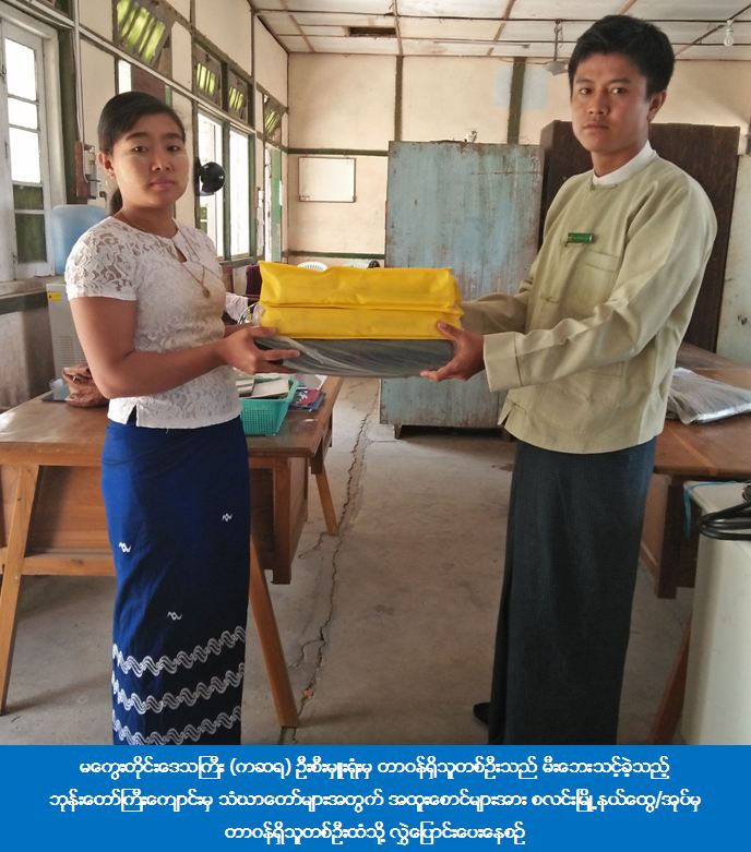 (၂၃၀၀၀၀) ကျပ်နှင့် အထူးစောင် (၂) ထည်အား မကွေးတိုင်းဒေသကြီး (ကဆရ) ဦးစီးမှူးရုံးမှ တာဝန်ရှိသူများသည် စလင်းမြို့နယ်အထွေထွေအုပ်ချုပ်ရေးဦးစီးဌာနသို့ (၄-၃-၂၀၁၇) ရက်နေ့တွင် သွားရောက် ထောက်ပံံ့ပြီးဖြစ်ပါသည်။