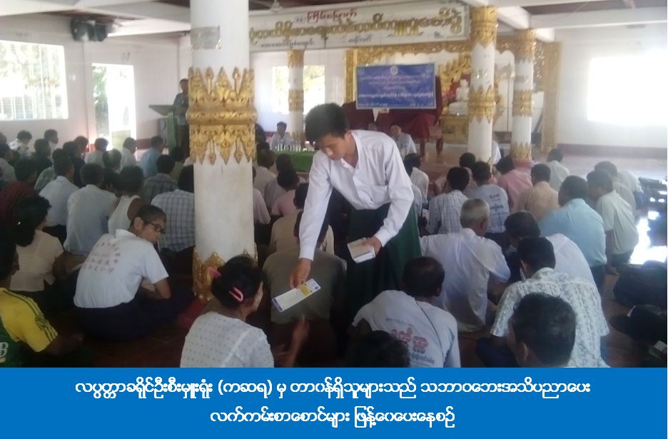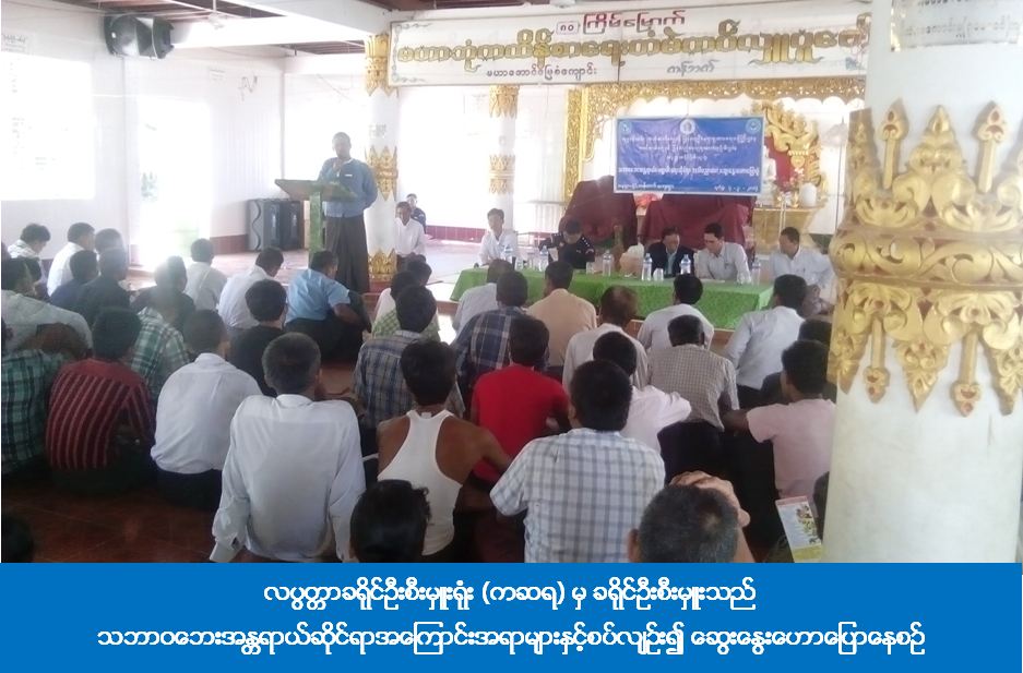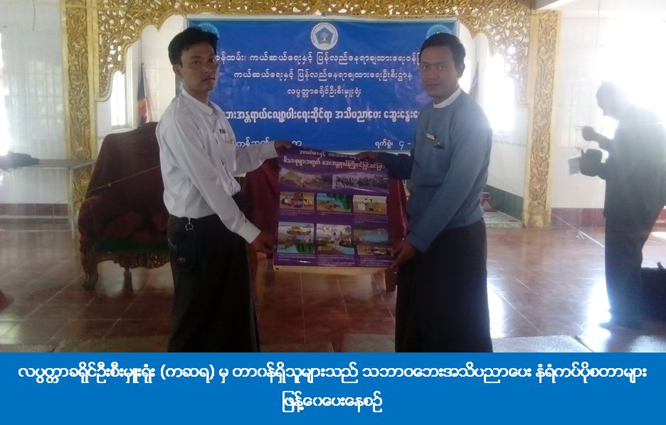 (၄-၃-၂၀၁၇) ရက်နေ့တွင် ကယ်ဆယ်ရေးနှင့် ပြန်လည်နေရာချထားရေးဦးစီးဌာန၊ လပွတ္တာခရိုင်ဦးစီးမှူးရုံးမှ တာဝန်ရှိသူများသည် စားသုံးသူရေးရာဦးစီးဌာန၊ မီးသတ်ဦးစီးဌာန၊စီမံကိန်းရေးဆွဲရေးဦးစီးဌာန၊ မွေးမြူရေးနှင့်ကုသရေးဦးစီးဌာနတို့နှင့်ပူးပေါင်း၍ လပွတ္တာမြို့နယ်၊ ကန်ဘက်ကျေးရွာ၌ သဘာဝဘေးအန္တရာယ်ဆိုင်ရာ အသိပညာပေးဟောပြောပွဲကျင်းပပြုလုပ်ခဲ့ပြီး တက်ရောက်လာသူများထံ လက်ကမ်းစာစောင်နှင့်နံရံကပ်ပိုစတာများ ဝေငှခြင်းတို့ကို ဆောင်ရွက်ခဲ့ပါသည်။ ဟောပြောပွဲသို့ ကျေးရွာနေပြည်သူ (၁၂၀) ဦးခန့်တက်ရောက်ခဲ့ကြောင်း သိရှိရပါသည်။