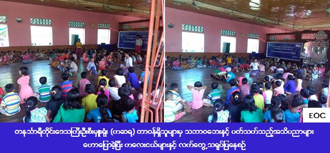 ကယ်ဆယ်ရေးနှင့် ပြန်လည်နေရာချထားရေးဦးစီးဌာန၊ တနင်္သာရီတိုင်းဒေသကြီးဦးစီးမှူးရုံးမှ တာဝန်ရှိသူများ သည် (၃-၃-၂၀၁၇) ရက်နေ့တွင် သရက်ချောင်းမြို့နယ်၊ ပိန်းတောကျေးရွာ ဘုန်းတော်ကြီးကျောင်း၌ သဘာဝဘေးအသိပညာပေးခဲ့ပြီး ကလေးများနှင့်အတူ သဘာဝဘေးဆောင်ရန်/ရှောင်ရန်များအား လက်တွေ့ သရုပ်ပြခဲ့ပါသည်။ အဆိုပါ ဟောပြောပွဲတွင် တက်ရောက်သူ (၄၀၀) ဦးခန့်ရှိကြောင်း သတင်းရရှိပါသည်။