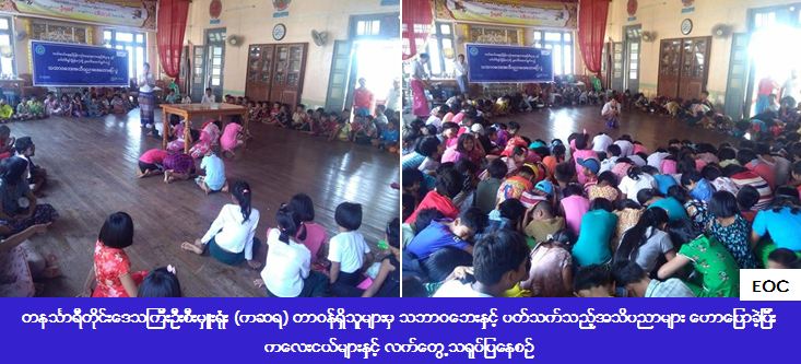 ကယ်ဆယ်ရေးနှင့် ပြန်လည်နေရာချထားရေးဦးစီးဌာန၊ တနင်္သာရီတိုင်းဒေသကြီးဦးစီးမှူးရုံးမှ တာဝန်ရှိသူများ သည် (၃-၃-၂၀၁၇) ရက်နေ့တွင် သရက်ချောင်းမြို့နယ်၊ သင်းကျွန်းကျေးရွာ ဘုန်းတော်ကြီးကျောင်း၌ သဘာဝဘေးအသိပညာပေးခဲ့ပြီး ကလေးများနှင့်အတူ သဘာဝဘေးဆောင်ရန်/ရှောင်ရန်များအား လက်တွေ့ သရုပ်ပြခဲ့ပါသည်။ အဆိုပါ ဟောပြောပွဲတွင် တက်ရောက်သူ (၃၀၀) ဦးခန့်ရှိကြောင်း သတင်းရရှိပါသည်။