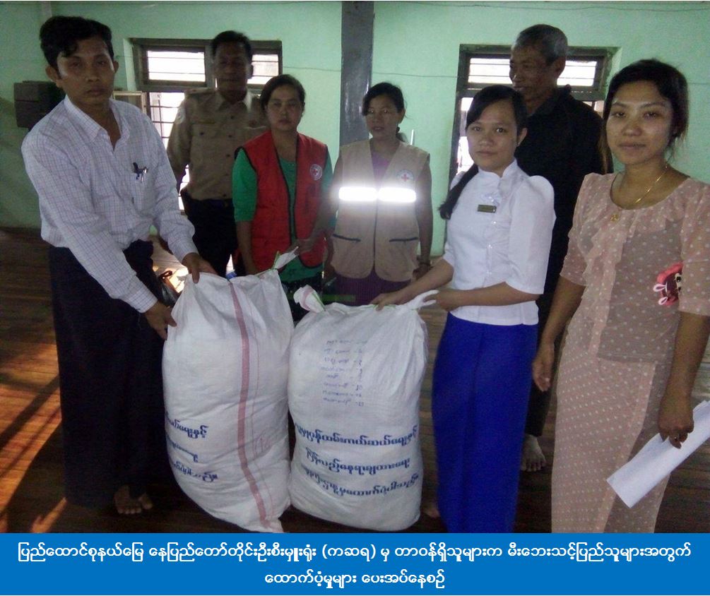 (၄-၃-၂၀၁၇) ရက်နေ့တွင် ပျဉ်းမနားမြို့နယ်၊ ကံဦးကျေးရွာအုပ်စု၊ သပြေလှကျေးရွာ၌ မီးလောင်ကျွမ်းမှုကြောင့် ဘေးသင့်ခဲ့သည့် အိမ်ထောင်စု (၉) စုမှ ဘေးသင့်ပြည်သူများအတွက် ကယ်ဆယ်ရေးပစ္စည်းများနှင့် အဝတ်ဟောင်းထုပ်များအား ပြည်ထောင်စုနယ်မြေ နေပြည်တော်တိုင်းဦးစီးမှူးရုံး (ကဆရ) မှ တာဝန်ရှိသူများက (၄-၃-၂၀၁၇) ရက်နေ့တွင် ထောက်ပံ့ပေးအပ်ခဲ့ကြောင်း သိရှိရပါသည်။
