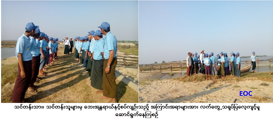ကယ်ဆယ်ရေးနှင့်ပြန်လည်နေရာချထားရေးဦးစီးဌာန၊ ဖျာပုံခရိုင်ဦးစီးမှူးရုံးမှ တာဝန်ရှိသူများသည် (၁၅-၃-၂၀၁၇) ရက်နေ့တွင် ဒေးဒရဲမြို့နယ်၊ သောကြာကျေးရွာအုပ်စု မြစိမ်းကန်ကျေးရွာ၌ သဘာ ဘာဝဘေးလျော့ပါးရေး စေတနာဝန်ထမ်းလူငယ်ဆင့်ပွား သင်တန်းအား ဆက်လက်ပို့ချပြီး အရေးပေါ်အခြေအနေတွင် ကြိုတင်သတိပေးချက်စနစ် ကောင်းမွန်စွာဆောင်ရွက်တတ်စေရေး မြစိမ်းကန်ကျေးရွာ ရေကာတာတွင် လက်တွေ့ သရုပ်ပြလေ့ကျင့်မှုများဆောင်ရွက်ခဲ့ကြောင်း သတင်း ရရှိပါသည်။