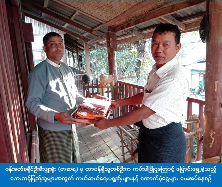 ဗန်းမော်မြို့၊ ကံသာကျေးရွာ၌ မြစ်ရေတိုက်စား၍ ကမ်းပါပြိုမှုကြောင့် ပြောင်းရွှေ့ခဲ့သည့် အိမ်ထောင်စု (၂) စုအတွက် ဗန်းမော်ခရိုင်ဦးစီးမှူးရုံး (ကဆရ) မှ တာဝန်ရှိသူများသည် (၁၆-၃-၂၀၁၇) ရက်နေ့တွင် ကယ်ဆယ်ရေးပစ္စည်း (၄) မျိုး (၂) အိမ်ထောင်စာနှင့် လူဦးရေ (၁၂) ဦးအတွက် ဆန်ရိက္ခာဖိုးငွေ (၁၀၈၀၀) ကျပ်တိတိတို့ကို ထောက်ပံ့ပေးခဲ့ကြောင်း သိရှိရပါသည်။
