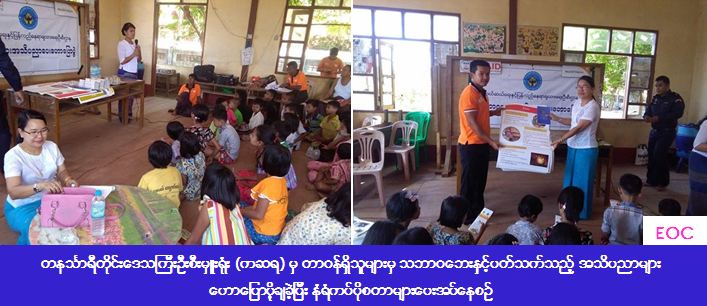 ကယ်ဆယ်ရေးနှင့် ပြန်လည်နေရာချထားရေးဦးစီးဌာန၊ တနင်္သာရီတိုင်းဒေသကြီးဦးစီးမှူးရုံးမှ တာဝန်ရှိသူများသည် (၁၇-၃-၂၀၁၇) ရက်နေ့တွင် လောင်းလုံမြို့နယ်၊ သဘော့ဆိပ်ကျေးရွာ၌ သဘာဝဘေးအသိပညာပေးဟောပြောပွဲ ကျင်းပပြုလုပ်ခဲ့ပြီး လက်ကမ်းစာစာများနှင့် နံရံကပ်ပိုစတာများလည်း ဝေငှပေးခြင်း၊ မီးသတ်ဦးစီးဌာနမှလည်း မီးသတ်ဆေးဘူးဖွင့်ပြီး မီးငြိမ်းသတ်မှုအား လက်တွေ့သရုပ်ပြသခဲ့ပါသည်။ အဆိုပါ ဟောပြောပွဲသို့ တက်ရောက်သူဦးရေ (၁၅၀) ဦးခန့်ရှိကြောင်း သတင်းရရှိပါသည်။