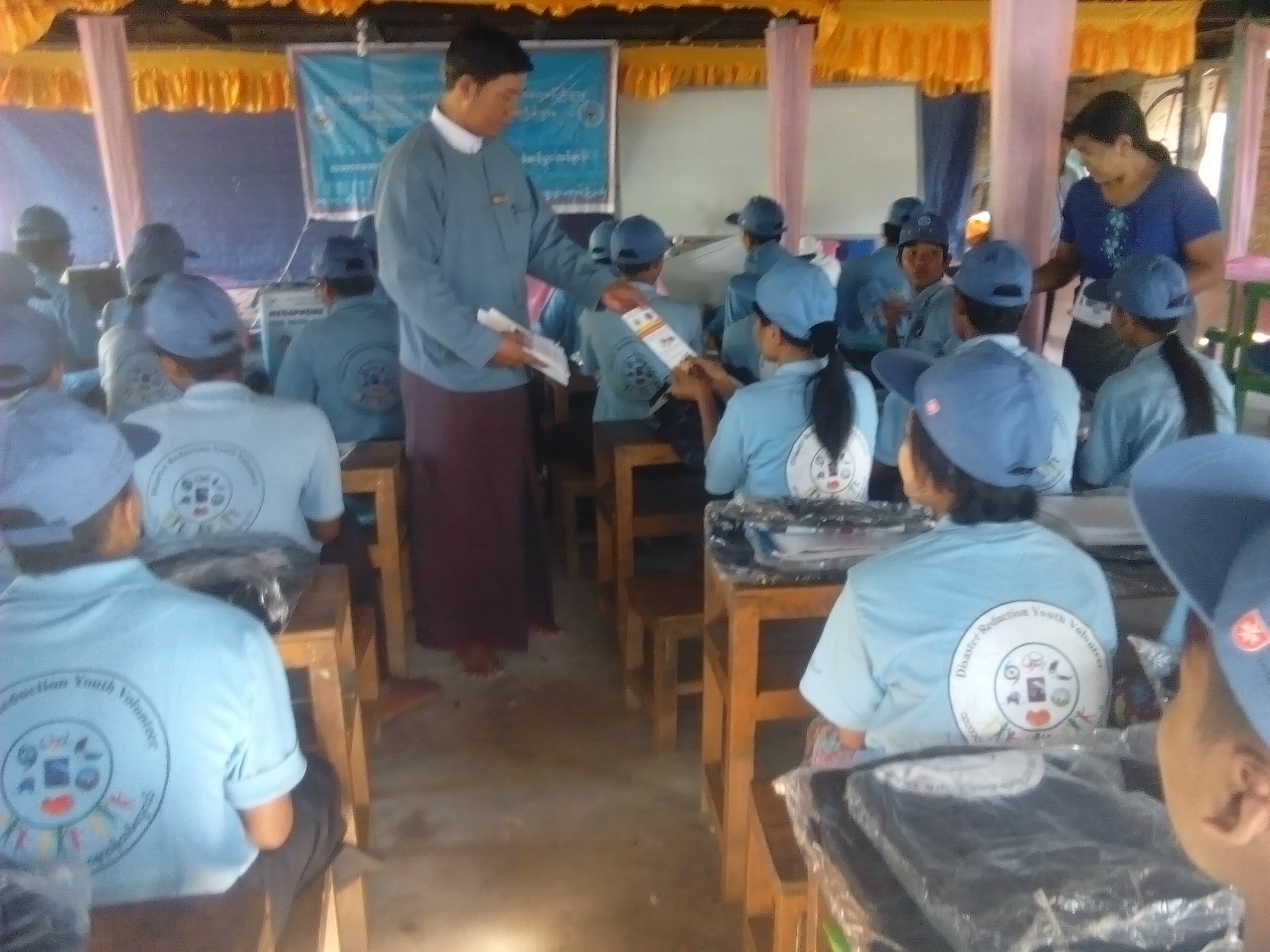 ကယ်ဆယ်ရေးနှင့် ပြန်လည်နေရာချထားရေးဦးစီးဌာန၊ ဖျာပုံခရိုင်ဦးစီးမှူးရုံးမှ တာဝန်ရှိသူများသည် ဒေးဒရဲမြို့နယ်၊ သောကြာကျေးရွာအုပ်စု၊ မြစိမ်းကန်ကျေးရွာ၌ “သဘာဝဘေးလျော့ပါးရေးစေတနာ့ဝန်ထမ်းလူငယ်ဆင့်ပွားသင်တန်း”ကို (၁၄-၃-၂၀၁၇) ရက်နေ့မှ (၁၆-၃-၂၀၁၇) ရက်နေ့ထိ ဖွင့်လှစ်ခဲ့ရာ ယင်းသင်တန်းတွင် သဘာဝဘေးအန္တရာယ်ကြိုတင်ပြင်ဆင်ရေး၊ ကြိုတင်ကာကွယ်ရေးနှင့် အရေးပေါ်တုံ့ပြန်ဆောင်ရွက်ရေးဆိုင်ရာ သရုပ်ပြလေ့ကျင့်ခြင်း Table Top Exercise များဖြင့် လေ့ကျင့်ပို့ချပေးခဲ့ပြီး သင်တန်းဆင်းလက်မှတ်များ၊ အထောက်အကူပြုပစ္စည်းများ၊ ရေဒီယို၊ Hand Speaker၊ လက်နှိပ်မီး၊ မိုးကာ၊ ကျောပိုးအိတ်၊ တီရှပ်၊ ဦးထုပ်များ၊ လက်ကမ်းစာစောင်များနှင့် နံရံကပ်ပိုစတာများ ဝေငှပေးခဲ့ကြောင်း သိရှိရပါသည်။
