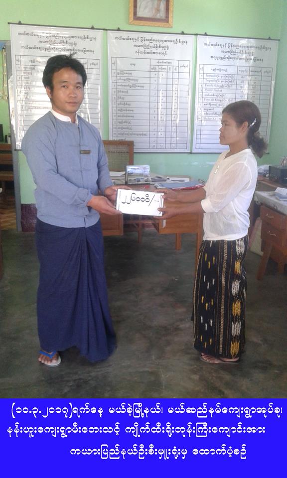 ယင်းနောက် (၁၇-၃-၂၀၁၇) ရက်နေ့တွင် ကယားပြည်နယ်ဦးစီးမှူးရုံး (ကဆရ) မှ တာဝန်ရှိသူများသည် အဆိုပါဘုန်းတော်ကြီးကျောင်းမှ သံဃာတော်များ သင်္ကန်း (၂) စုံနှင့် ကျောင်းဆောက်ပစ္စည်းဖိုးစုစုပေါင်း (၂၂၆ဝဝဝ) ကျပ်တိတိကို ထပ်မံထောက်ပံ့ပေးခဲ့ကြောင်း သိရှိရပါသည်။