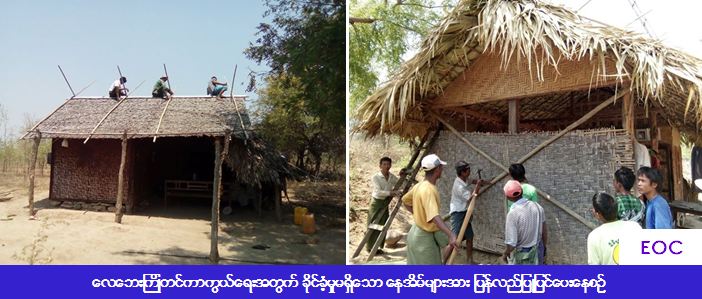 ကယ်ဆယ်ရေးနှင့် ပြန်လည်နေရာချထားရေးဦးစီးဌာန ၊ စစ်ကိုင်းဒေသကြီးဦးစီးမှူးရုံးမှ တာဝန်ရှိသူများသည် (၂၃-၃-၂၀၁၇) ရက်နေ့တွင် မုံရွာမြို့နယ်၊ ညောင်ပင်ရွာသစ်ရှိ ခိုင်ခ့ံမှုမရှိသည့် နေအိမ်များအား လေဘေးကြိုတင်ကာကွယ်ရေးအတွက် ပြန်လည်ပြုပြင်ခြင်းလုပ်ငန်းများကို ကရုဏာမြင့်မိုရ် လူမှုရေးအသင်း၊ ဓမ္မပါလ လူမှုရေးအသင်း၊ ညောင်ပင်ရွာသစ်ရှိ ဒေသခံလူမှုရေးအသင်းများ၊ ညောင်ပင်ရွာသစ်ရှိ ဒေသခံများနှင့် အတူ ပူးပေါင်းဆောင်ရွက်ခဲ့ကြောင်း သတင်းရရှိပါသည်။
