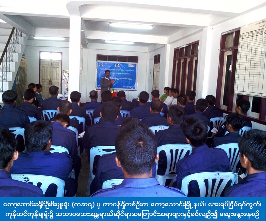 ကော့သောင်းခရိုင်ဦးစီးမှူးရုံး (ကဆရ) မှ တာဝန်ရှိ်သူများသည် (၂၆-၃-၂၀၁၇) ရက်နေ့တွင် ကော့သောင်းမြို့နယ်၊ အေးရပ်ငြိမ်ရပ်ကွက်၊ ကုန်တင်ကုန်ချရုံး၌ “သဘာဝဘေးအသိပညာပေးဟောပြောပွဲ” ကျင်းပပြုလုပ်ရာ အဆိုပါရုံးမှ တာဝန်ရှိသူများတက်ရောက်ခဲ့ကြပြီး တက်ရောက်သူ (၈၀) ဦးခန့်ရှိကြောင်း သိရှိရပါသည်။