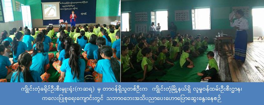 (၂၉-၃-၂၀၁၇) ရက်နေ့တွင် ကျိုင်းတုံခရိုင်ဦးစီးမှူးရုံး (ကဆရ) မှ တာဝန်ရှိသူများသည် နေ့လည် (၁၃:၀၀) မှ (၁၄:၃၀) အချိန်အထိ ကျိုင်းတုံမြို့နယ်ရှိ လူမှုဝန်ထမ်းဦးစီးဌာန၊ ကလေးပြုစုရေး ကျောင်းတွင် သဘာဝဘေးအသိပညာပေးဟောပြောပွဲ ပြုလုပ်ခဲ့ရာ အဆိုပါ ဟောပြောပွဲသို့ လူဦးရေ (၈၀) ဦး တက်ရောက်ခဲ့ကြောင်း သိရှိရပါသည်။