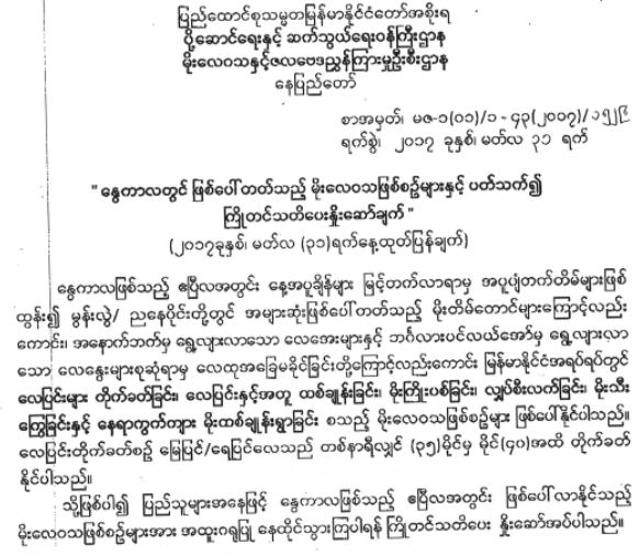 မိုးလေဝသနှင့် ဇလဗေဒညွှန်ကြားမှုဦးစီးဌာနမှ ထုတ်ပြန်ထားသော နွေကာလတွင် ဖြစ်ပေါ်တက်သည့် မိုးလေဝသဖြစ်စဉ်များနှင့်ပတ်သက်၍ ကြိုတင်သတိပေးနှိုးဆော်ချက်