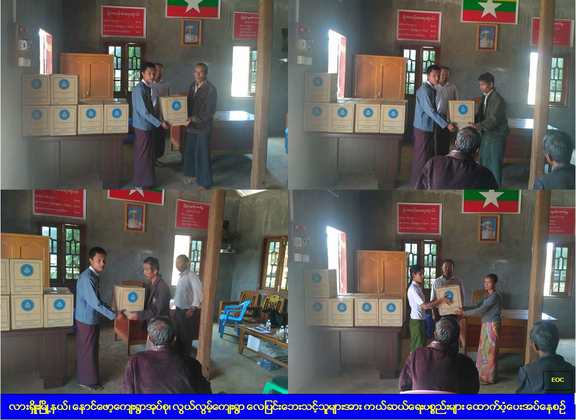 (၂-၄-၂၀၁၇) ရက်နေ့ (၀၅:ဝဝ)နာရီအချိန်တွင် လားရှိုးမြို့နယ်၊ နောင်ဖော့ကျေးရွာအုပ်စု၊ လွယ်လွမ့်ကျေးရွာ၌ လေပြင်းတိုက်ခတ်မှုကြောင့် အမိုးလန်ပျက်စီးခဲ့သည့် အိမ်ခြေ (၁၂)လုံးအတွက် ကယ်ဆယ်ရေးပစ္စည်း(၄)မျိုးအား ကယ်ဆယ်ရေးနှင့်ပြန်လည်နေရာချထားရေးဦးစီးဌာန၊ လားရှိုးခရိုင်ဦးစီးမှူးရုံးမှ တာဝန်ရှိသူများက (၅-၄-၂၀၁၇)ရက်နေ့ (၁၀:၃၀)နာရီတွင် သွားရောက်ထောက်ပံ့ပေးခဲ့ပါကြောင်း သတင်းရရှိပါသည်။
