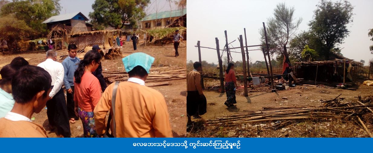 အဆိုပါလေဘေးသင့်ခဲ့သည့်ကျေးရွာသို့ (၆-၄-၂၀၁၇) ရက်နေ့တွင် ဧရာဝတီတိုင်းဒေသကြီး လူမူရေးဝန်ကြီး ဒေါက်တာလှမြတ်သွေး၊ လေးမျက်နှာမြို့နယ်အထွေထွေအုပ်ချုပ်ရေးဦးစီးဌာနမှ မြို့နယ်အုပ်ချုပ်ရေးမှူးနှင့် ကယ်ဆယ်ရေးနှင့်ပြန်လည်နေရာချထားရေးဦးစီးဌာနမှ ဟင်္သာတခရိုင်ဦးစီးမှူးတို့သည် ကျေးရွာအုပ်စုအုပ်ချုပ်ရေးမှူးများ၊ ရပ်မိရပ်ဖများနှင့်အတူ ကွင်းဆင်းကြည့်ရှုခဲ့ပြီး လေဘေးသင့်ပြည်သူများအား တွေ့ဆုံအားပေးစကားပြောကြားခဲ့ပါသည်။