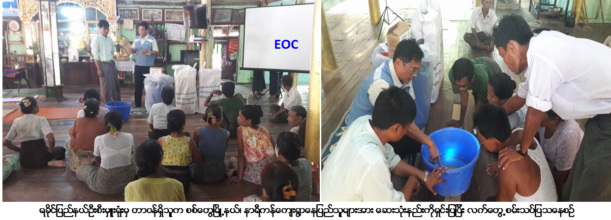 ကယ်ဆယ်ရေးနှင့်ပြန်လည်နေရာချထားရေးဦးစီးဌာန၊ ရခိုင်ပြည်နယ်ဦးစီးမှူးရုံးမှ တာဝန်ရှိသူများသည် (၁၀-၄-၂၀၁၇) ရက်နေ့တွင် (၁၁းဝ၀) နာရီတွင် စစ်တွေမြို့နယ်၊ နာရီကန်ကျေးရွာ၌ သောက်ရေရှားပါးသည့်အတွက် ရေသန့်စက် (၁) လုံးနှင့် ရေသန့်ဆေးဗူး (၁၄) ဗူးပါ (၂) အိတ် အား သွားရောက်ထောက်ပံ့ပေးအပ်ခဲ့ပြီး ဆေးသုံးနည်းကိုလည်း လက်တွေ့စမ်းသပ်ပြသခဲ့ကြောင်း သတင်းရရှိပါသည်။