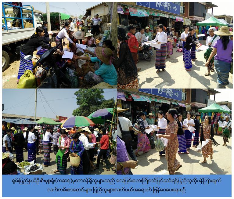 ကယ်ဆယ်ရေးနှင့်ပြန်လည်နေရာချထားရေးဦစီးဌာန၊ ရှမ်းပြည်နယ်ဦးစီးမှူးရုံးမှတာဝန်ရှိသူများသည် (၁၀-၄-၂၀၁၇) ရက်နေ့တွင် ဟဲဟိုးမြို့မစျေး၌ လေပြင်းဘေးကြိုတင်ကာကွယ်နိုင်ရေးအတွက် လေပြင်းဘေးကြိုတင်ပြင်ဆင်ရန် ပြည်သူသို့ပြန်ကြားချက်လက်ကမ်းစာစောင်များကို ပြည်သူများလက်ဝယ်အရောက် ဖြန့်ဝေပေးခဲ့ကြောင်း သတင်း ရရှိပါသည်။