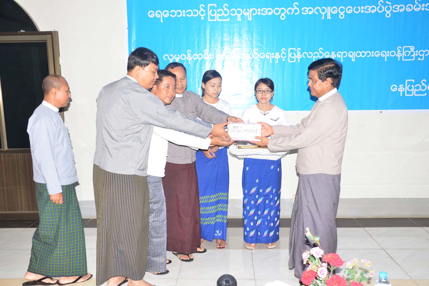 ယင်းနောက် ဒုတိယသမ္မတသည် မြန်မာနိုင်ငံတစ်ဝှမ်းဖြစ်ပွားနေသောရေဘေးသင့် ပြည်သူများအတွက် သတ္တုတွင်းဝန်ကြီးဌာနနှင့် မြန်မာနိုင်ငံကျောက်မျက်လုပ်ငန်းရှင်များအသင်းမှ လှူဒါန်းငွေကျပ်သိန်း (၁၅၀၀)ကိုလက်ခံရယူခဲ့ပါသည်။ အဆိုပါ လှူဒါန်းမှုနှင့်စပ်လျဥ်း၍ မြန်မာနိုင်ငံသဘာဝဘေးအန္တရာယ်ဆိုင်ရာစီမံခန့်ခွဲမှုလုပ်ငန်းကော်မတီဥက္ကဌ ၊ လူမှုဝန်ထမ်း၊ ကယ်ဆယ်ရေးနှင့် ပြန်လည်နေရာချထားရေးဝန်ကြီးဌာန၊ ပြည်ထောင်စုဝန်ကြီးဒေါက်တာမြတ်မြတ်အုန်းခင်ကကျေးဇူးတင်စကားပြန်လည်ပြော ကြားခဲ့ပါသည်။