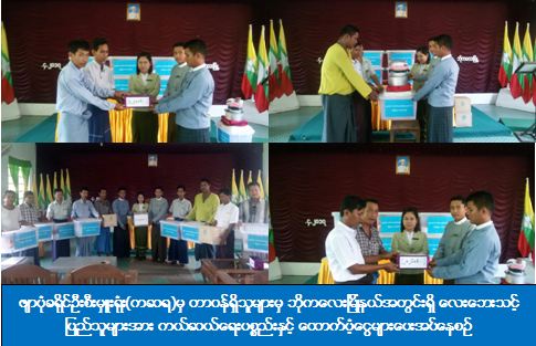 ဖျာပုံခရိုင်ဦးစီးမှူးရုံး(ကဆရ)မှ တာဝန်ရှိသူများသည် ဖျာပုံခရိုင်၊ ဘိုကလေးမြို့နယ်အတွင်းရှိ ချောင်းဗြဲကြီးကျေးရွာအုပ်စု၊ ဂွေးချောင်းကြီးကျေးရွာ၊ ကျွန်းသာယာကျေးရွာအုပ်စု၊ သ ဘော့ကျွန်းကျေးရွာနှင့် ဆတ်ကျွန်းကျေးရွာအုပ်စုအတွင်းရှိ မရမ်းကျေးရွာများတွင် လေပြင်းတိုက်ခတ်ခံရမှုကြောင့် စုစုပေါင်းပြိုကျပျက်စီးအိမ်ခြေ( ၇)လုံးနှင့် အမိုးလန်ပျက်စီးအိမ်ခြေ(၂)လုံး တို့အတွက် ကယ်ဆယ်ရေးပစ္စည်း(၉)မျိုး (၇)အိမ်ထောင်စာ၊ ကယ်ဆယ်ရေးပစ္စည်း(၄)မျိုး (၂)အိမ်ထောင်စာ၊ အိမ်ဆောက်ပစ္စည်းဘိုးထောက်ပံ့ငွေ(၁၁၀၀၀၀၀ိ/-)နှင့် လူဦးရေ(၃၅)ဦးအတွက် (၇)ရက်စာဆန် ရိက္ခာဘိုး(၇၃၅၀၀ိ/-) စုစုပေါင်းထောက်ပံ့ငွေကျပ် (၁၁၇၃၅၀၀ိ/-) တိတိအား (၁၈.၄.၁၇) ရက်နေ့တွင် ဘိုက လေးမြို့နယ် ထွေ/အုပ် ခန်းမ၌ ဘေးသင့်ပြည်သူများ၏လက်ဝယ်သို့ သက်ဆိုင်ရာ တာဝန်ရှိသူများရှေ့မှောက်တွင် ထောက်ပံ့ပေးအပ်ခဲ့ကြောင်း သတင်းရရှိပါသည်။