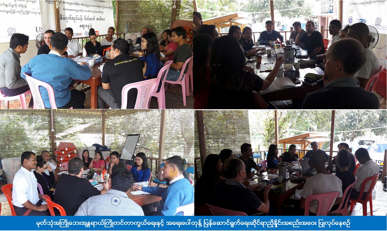 (၂၄-၄-၂၀၁၇) ရက်နေ့၊ မွန်းလွဲ (၁) နာရီအချိန်တွင် ရခိုင်ပြည်နယ်၊ စစ်တွေမြို့ရှိ IOM ရုံး၌ ရခိုင်ပြည်နယ်ဦးစီးမှူးရုံး (ကဆရ) မှ တာဝန်ရှိသူများသည် UN၊ INGO အဖွဲ့အစည်းများနှင့်ပူးပေါင်း၍ မုတ်သုံအကြိုဘေးအန္တရာယ်ကြိုတင်ကာကွယ်ရေးနှင့် အရေးပေါ်တုန့်ပြန်ဆောင်ရွက်ရေးဆိုင်ရာ ညှိနှိုင်းအစည်းအဝေးအား ကျင်းပပြုလုပ်ခဲ့ရာ IOM၊ OCHA၊ NRC၊ ACF၊ UNV၊ ACTED နှင့် WFP အဖွဲ့အစည်းများမှ လူဦးရေ (၁၀) ဦးခန့် တက်ရောက်ခဲ့ကြောင်း သိရှိရပါသည်။
