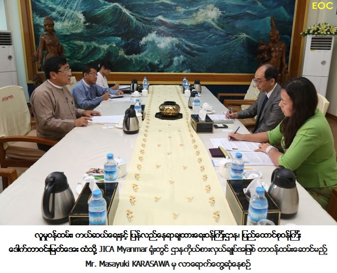 ၂၅-၄-၂၀၁၇၊နေပြည်တော်လူမှုဝန်ထမ်း၊ကယ်ဆယ်ရေးနှင့်ပြန်လည်နေရာချထားရေးဝန်ကြီးဌာန၊ပြည်ထောင်စုဝန်ကြီး ဒေါက်တာ ဝင်းမြတ်အေးအား အမေရိကန်နိုင်ငံ နိုင်ငံရပ်ခြားဘေးအန္တရာယ် အကူအညီပေးရေးရုံးမှ ခေတ္တ ညွှန်ကြားရေးမှူးဖြစ်သူ Ms. Carol Chan ဦးဆောင်သည့် OCHA Donor Support Group မှ ကိုယ်စားလှယ်များက ဝန်ကြီးရုံးမေခလာခန်းမတွင် (၂၄.၄.၂၀၁၇) ရက်နေ့ ညနေ (၂) နာရီ၌ လာရောက်တွေ့ဆုံခဲ့ပါသည်။ ယင်းသို့တွေ့ဆုံရာတွင် ဝန်ကြီးဌာနနှင့် ကုလသမဂ္ဂလူသားချင်းစာနာမှု အကူညီပေးရေးညှိနှိုင်းရေးရုံး (UNOCH)နှင့် နားလည်မှုစာချွန်လွှာရေးထိုး၍ ဘေးအန္တရာယ်တုံ့ပြန် ရေး၊ ကြိုတင်ပြင်ဆင်ရေးနှင့် သတင်းအချက်အလက်စီမံခန့်ခွဲရေးတို့တွင် ပူးပေါင်းဆောင်ရွက်မှုအခြေ အနေများ၊ နိုင်ငံတော်အစိုးရအနေဖြင့် ကချင်ပြည်နယ်၊ ရှမ်းပြည်နယ်နှင့် ရခိုင်ပြည်နယ်တို့ရှိ နေရပ် စွန့်ခွာရွှေ့ပြောင်းနေထိုင်ရသူများအား လူသားချင်းစာနာကူညီမှုပေးအပ်နေသည့် အခြေအနေမှသည် ဖွံ့ဖြိုးတိုးတက်ရေးအစီအစဉ်များပါ တစ်ပါတည်းပူးတွဲဆောင်ရွက်သွားနိုင်ရေးသို့ ပြောင်းလဲဆောင်ရွက် ရန်အစီအစဉ်များ စတင်ဆောင်ရွက်နေပြီဖြစ်ပါကြောင်း၊ သို့ဖြစ်ပါ၍ အလှူရှင်အဖွဲ့အစည်းအနေဖြင့် နေရပ်စွန့်ခွာရွှေ့ပြောင်းနေထိုင်သူများအတွက် အလုပ်အကိုင်ပေး၍ ငွေကြေးထောက်ပံ့မှု(Cash for Work)၊ အလုပ်လုပ်စေပြီး ရိက္ခာထောက်ပံ့မှု (Food for Work) အစီအစဉ်များ၊ သက်မွေးဝမ်းကျောင်း အခွင့်အလမ်းဖန်တီးပေးခြင်း အစီအစဉ်များဖြင့် ထောက်ပံ့ကူညီစေလိုကြောင်း၊ မိမိတို့အနေဖြင့် စခန်း တွင်းနေထိုင်သူများအနေဖြင့် ပေးအပ်လာမည့်အကူအညီများအပေါ်တွင်သာ မှီခိုမနေဘဲ ကိုယ့်ခြေ ထောက်ပေါ်ကိုယ်ရပ်တည်နိုင်ရေး အားပေးဆောင်ရွက်သွားမည်ဖြစ်ပါကြောင်း၊ အလှူရှင်များအနေ ဖြင့် မည်သို့ပါဝင်ကူညီနိုင်မည်ကို သိလိုပါကြောင်းဆွေးနွေးခဲ့ပါသည်။ အလှူရှင်အဖွဲ့အစည်း ဘက်မှ လည်း ယခုအလှူရှင်များပါဝင်သည့်အဖွဲ့အနေဖြင့် နှစ်စဉ်နိုင်ငံတစ်နိုင်ငံသတ်မှတ်၍ သွားရောက် လေ့လာလျက်ရှိရာ ယခုနှစ်တွင် မြန်မာနိုင်ငံအားရွေးချယ်ပြီး လာရောက်ခြင်းဖြစ်ပါကြောင်း၊ လူသား ချင်းစာနာမှု ကဏ္ဍနှင့်ဖွံ့ဖြိုးတိုးတက်မှုကဏ္ဍ (၂) ရပ်အတွက်လိုအပ်ချက်များ ရှင်းလင်းစွာသိရန် လိုအပ်ပါကြောင်း၊ UNOCHA အဖွဲ့အနေဖြင့် နေရပ်စွန့်ခွာနေထိုင်သူများအတွက် အစိုးရ၏ အလုပ် အကိုင်အခွင့်အလမ်း ဖန်တီးပေးမှုနှင့် အထောက်အပံ့အပေါ် မှီခိုမှုကင်းလာစေရေး ကြိုးပမ်းမှုကို ချီးကျူးပါကြောင်း၊ ကချင်ပြည်နယ်ရှိ စစ်ရှောင်စခန်းမှပြည်သူများအနေဖြင့် ၂၀၁၁ ခုနှစ်မှစတင်၍ စခန်းများတွင် နေထိုင်လာခဲ့ခြင်း ကြောင့်၄င်းတို့ အတွက် အလုပ်အကိုင်အခွင့် အလမ်းရရှိရေး ဆောင်ရွက်ခြင်းမှာ များစွာ