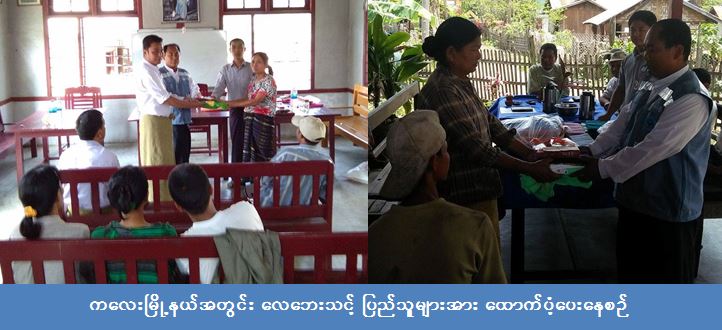 (၂၄-၄-၂၀၁၇) ရက်နေ့ နေ့လည်(၁၄:၂၀) တွင် ကလေးမြို့နယ် ကျေးရွာ (၉) ရွာ၌ဖြစ်ပွားခဲ့သော လေပြင်း တိုက်ခတ်မှုကြောင့် အမိုးလန်နေအိမ် စုစုပေါင်း (၃၅) လုံးအတွက် (၁) အိမ်လျှင် (၅၀၀,၀၀) ကျပ်နှုန်း နှင့် ကယ်ဆယ်ရေးပစ္စည်း (၅) မျိုးတို့ကို (၂၅-၄-၂၀၁၇) ရက်နေ့တွင် ကလေးဒုတိယ မြို့နယ်အုပ်ချုပ် ရေးမှူးနှင့်အတူ ကလေးခရိုင်ဦးစီးမှူးရုံး (ကဆရ) မှ တာဝန်ရှိသူများက သွားရောက်ထောက်ပံ့ ပေးခဲ့ကြောင်း သိရှိရပါသည်။
